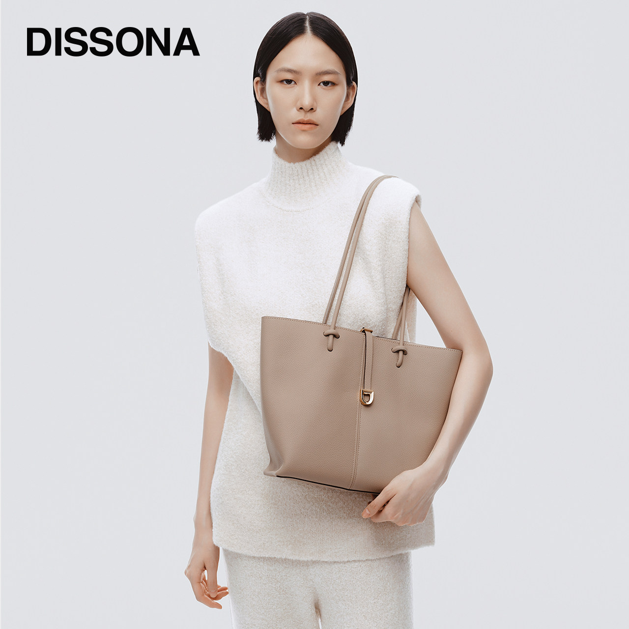 迪桑娜女包包漫步通勤单肩包大容量手提包高级斜挎包真皮托特包b