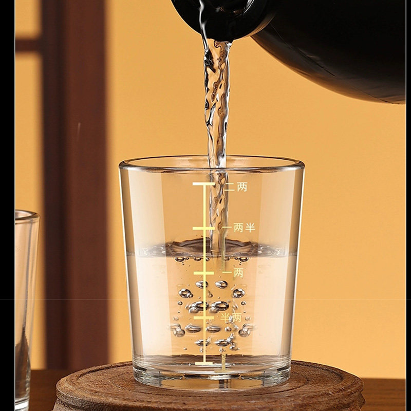 金边二两白酒杯带刻度家用酒具分酒2两杯套装钢化玻璃杯啤酒杯子