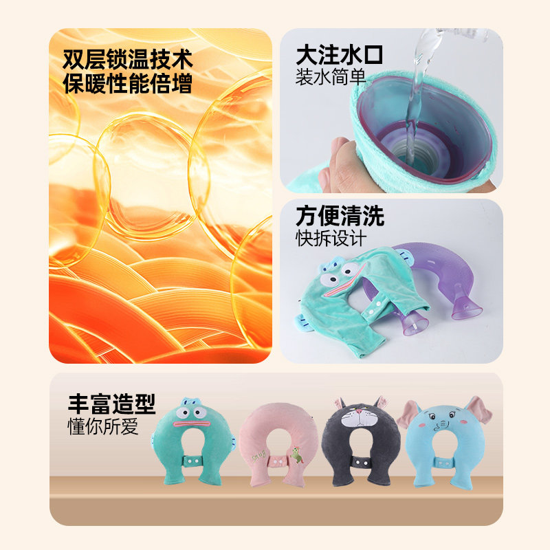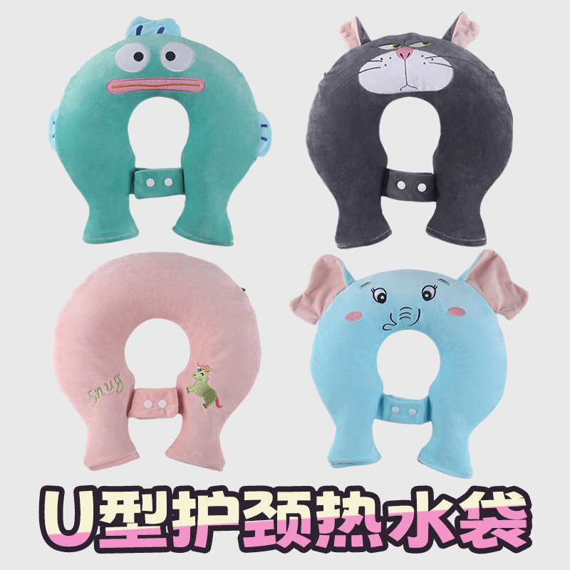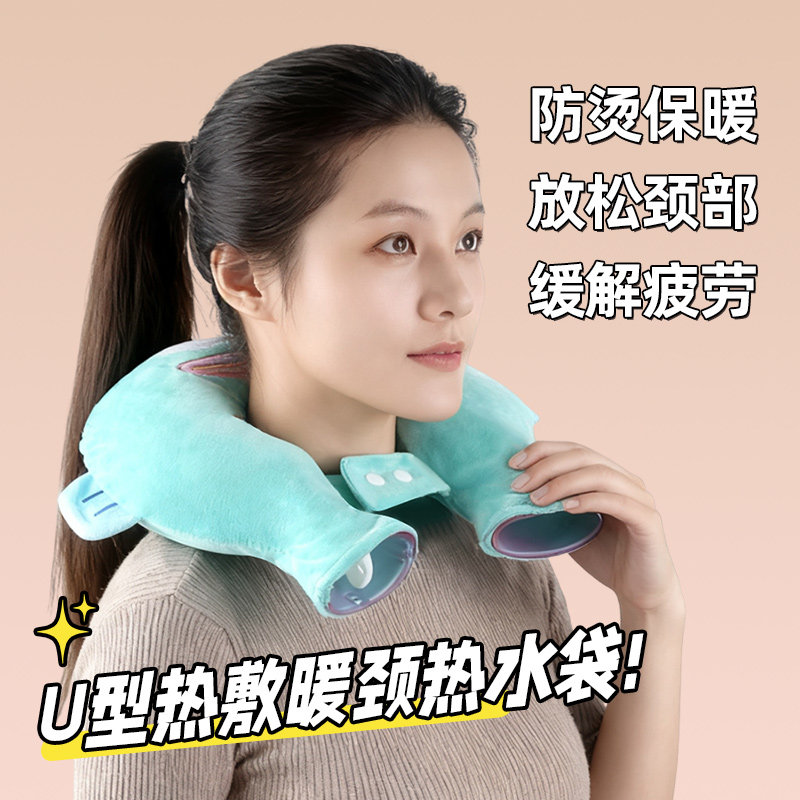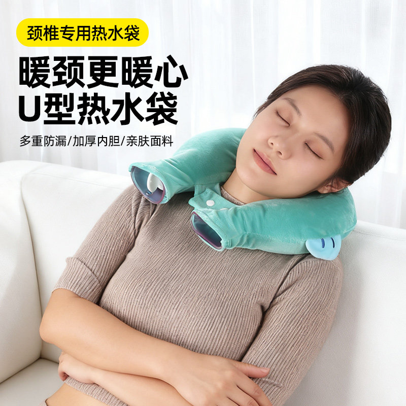 U型热水袋颈椎热敷专用注水暖水袋护颈肩颈防爆加厚挂脖围脖枕头