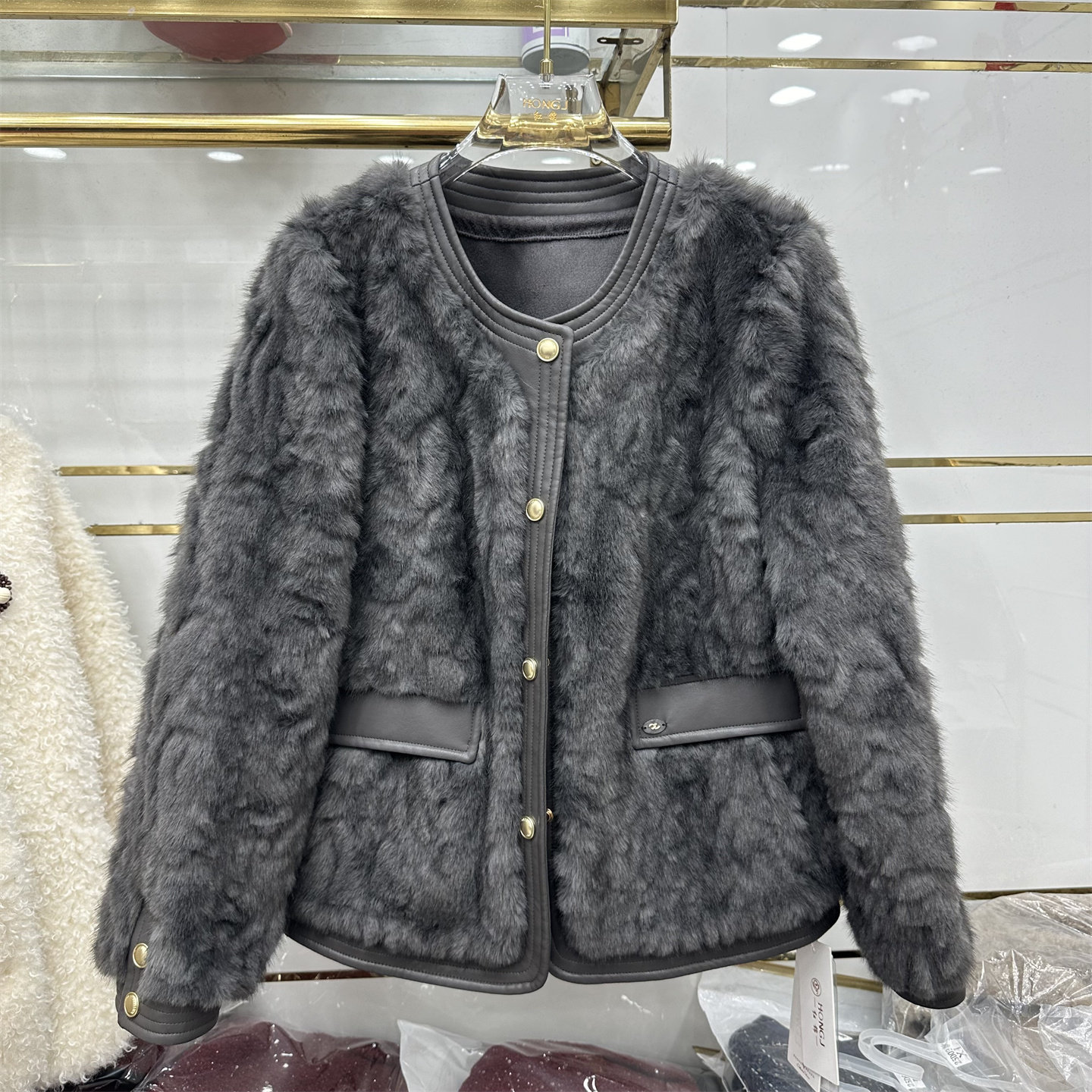 正品高级感洋气简约妈妈短款2025新款中年女装时尚皮毛一体外套