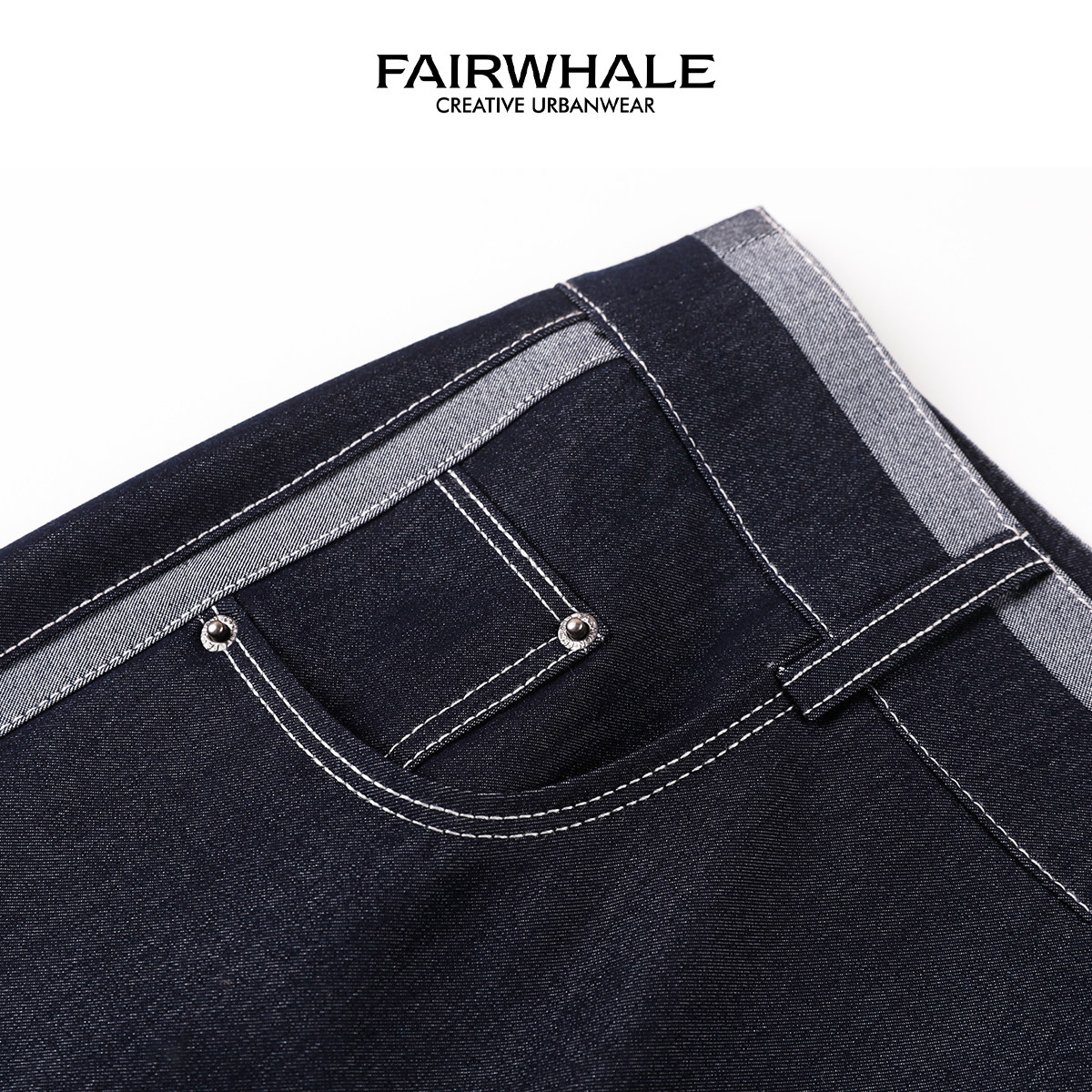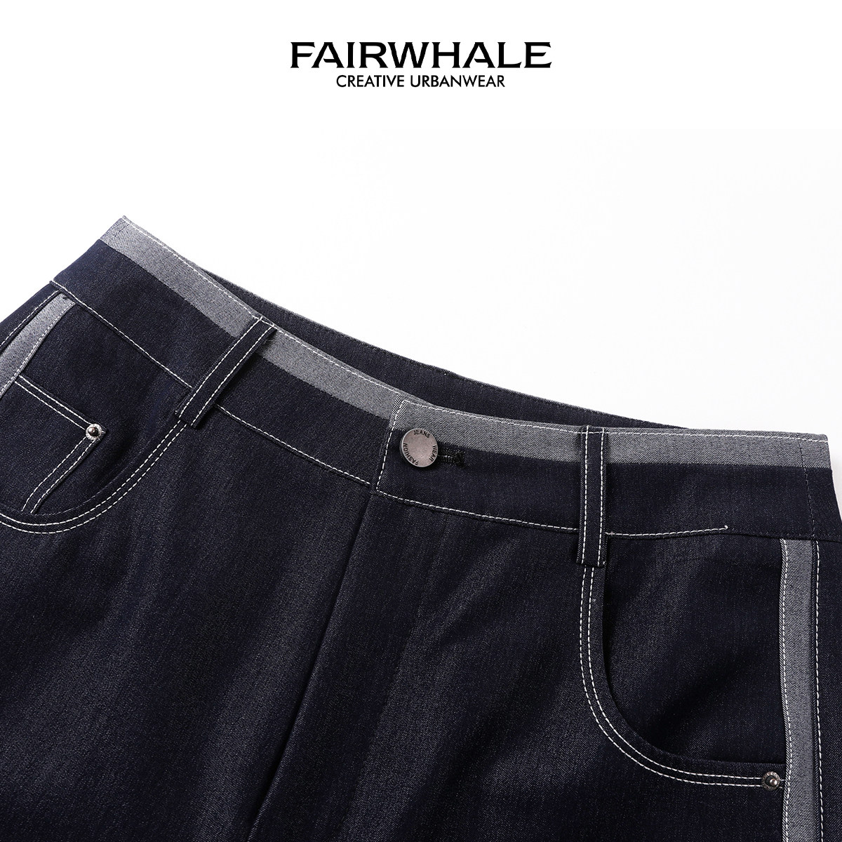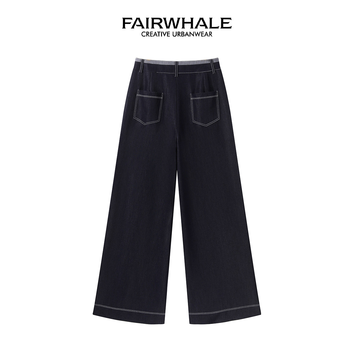 马克华菲女装休闲百搭腰部纽扣拼接线直筒阔腿裤经典时尚牛仔裤