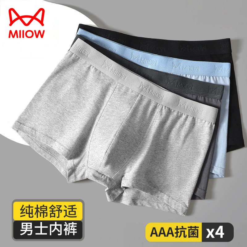 猫人内裤男士纯棉抗菌四角裤男式透气裤衩短裤平角裤全棉短裤头