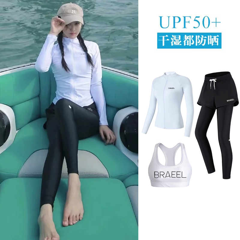 潜水服女水母衣防晒速干泳衣保守大码分体长袖长裤冲浪服女浮潜衣