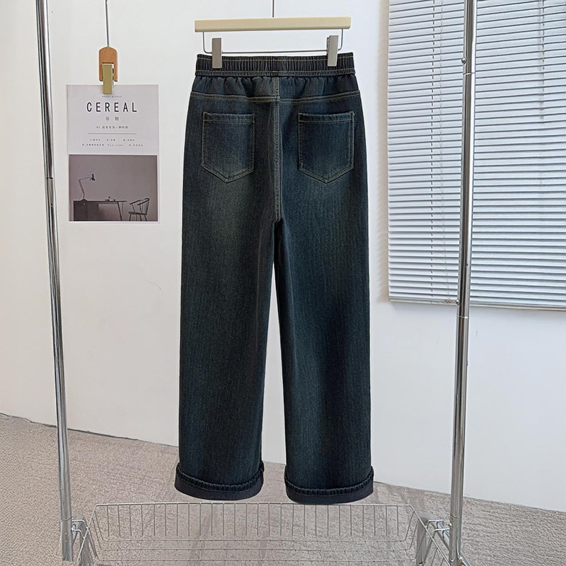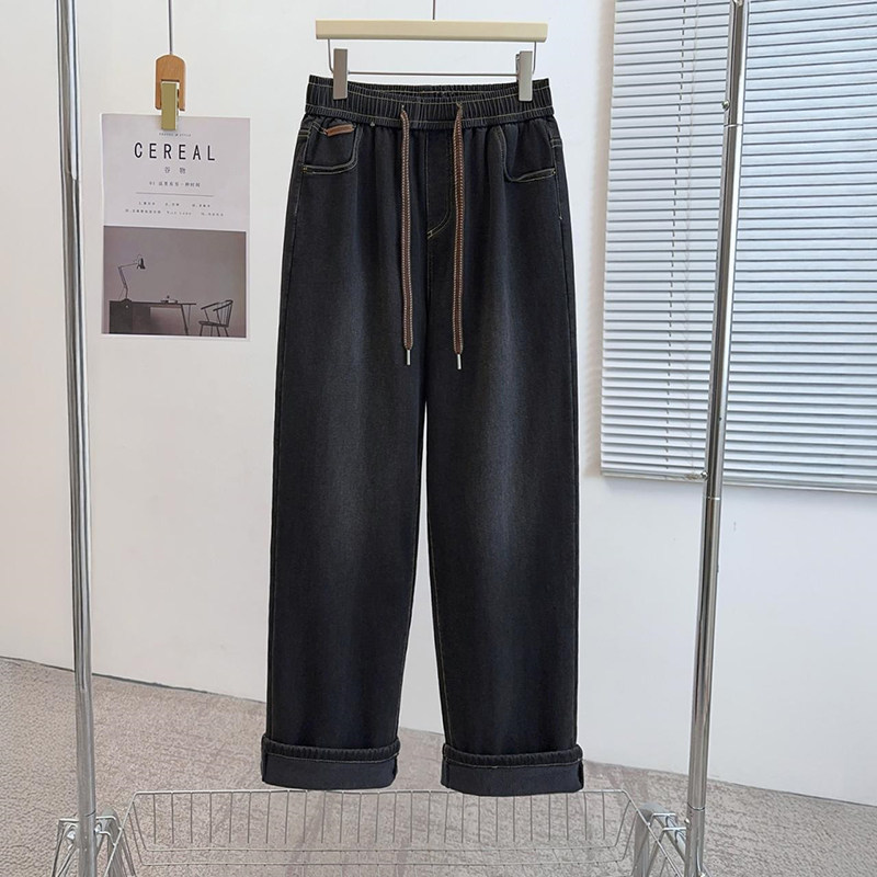 特大码加绒直筒牛仔裤女冬季加肥