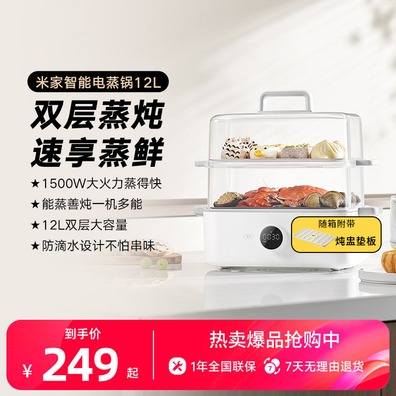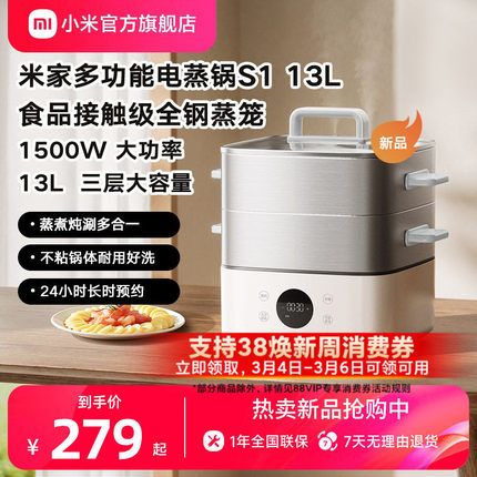 小米官旗米家电蒸锅13L早餐机电煮锅电火锅多功能锅大容量炖可视
