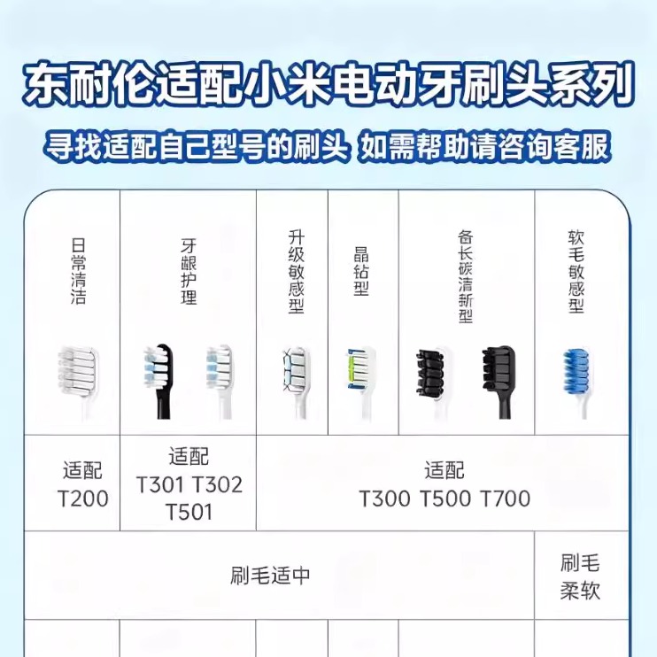 东耐伦适配小米电动牙刷头T300/500/100米家通用替换T301/302/601