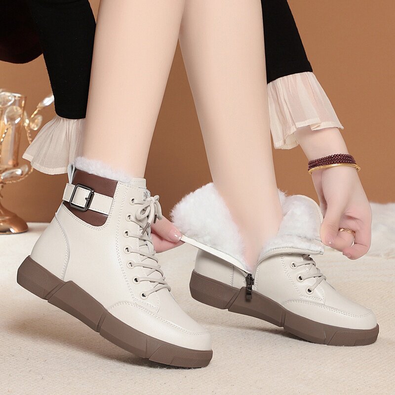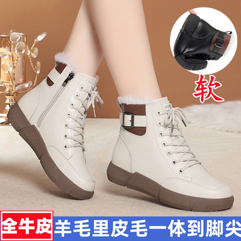 雪地靴女款冬季加绒马丁靴女妈妈大棉鞋羊毛皮毛一体真皮短靴靴子