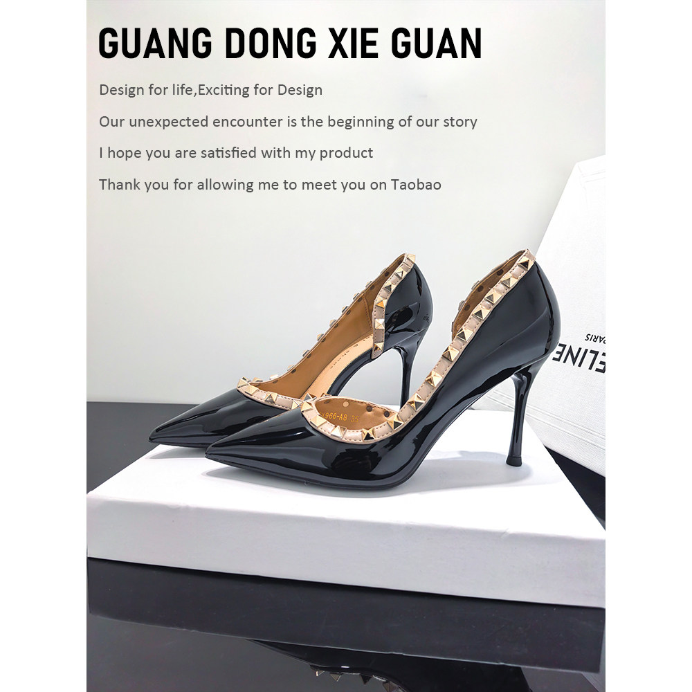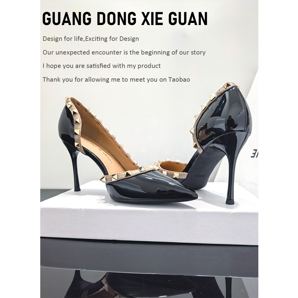 铆钉高跟鞋浅口性感细跟侧空单鞋