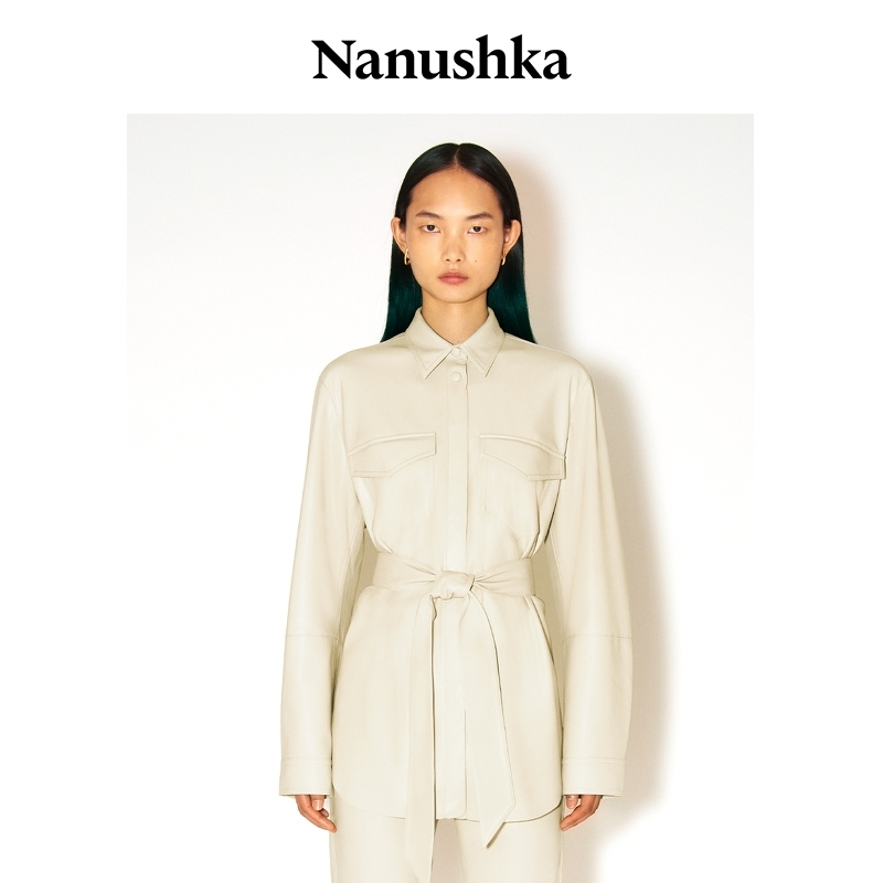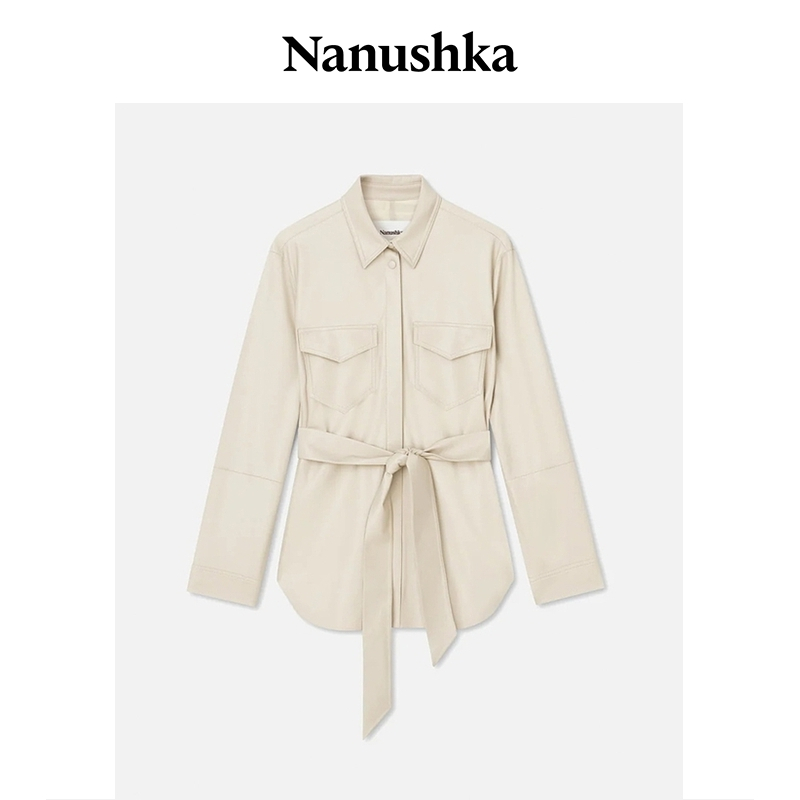 【经典惊喜折扣】NANUSHKA 女士 ARTHA 素皮收腰系带衬衫皮衣外套