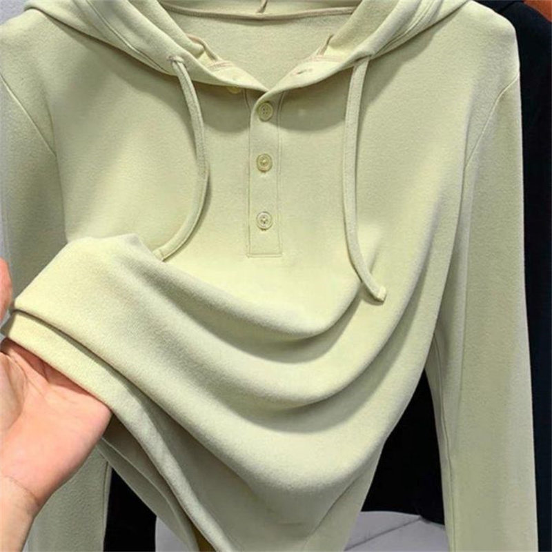 德绒保暖连帽长袖卫衣女秋冬季韩版宽松显瘦加绒加厚纯色上衣外套