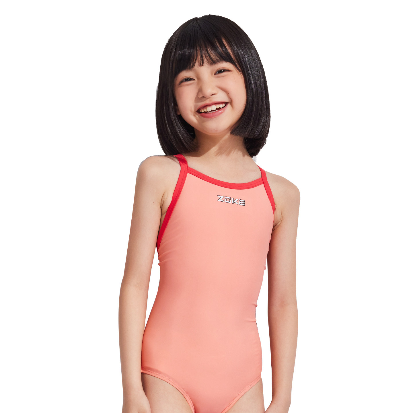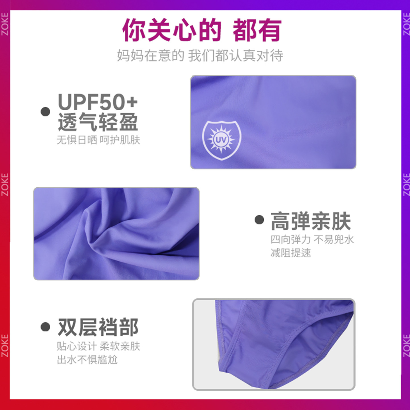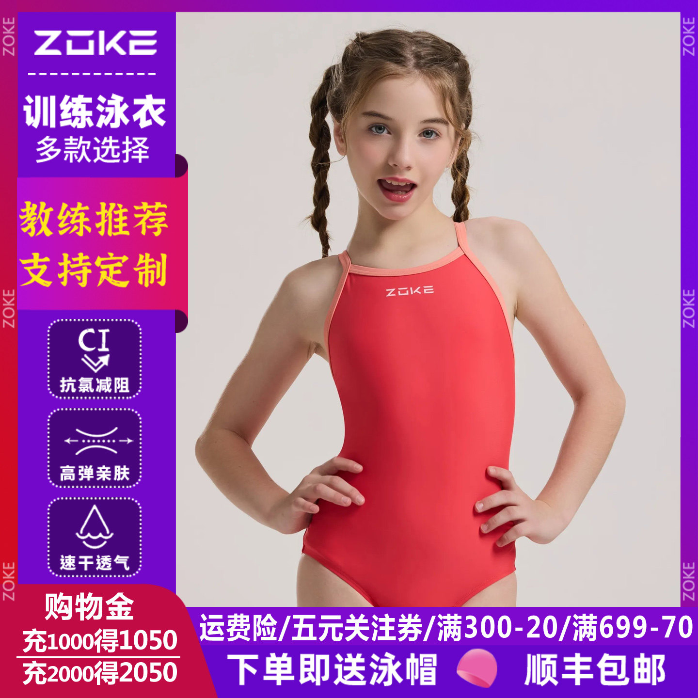 zoke洲克青少年儿童女童女孩专业训练比赛连体三角游泳衣速干新款