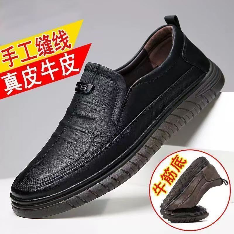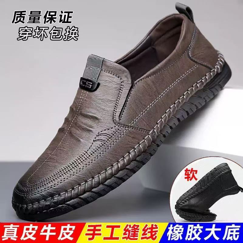 100%全牛皮法奥狼真皮软底懒人鞋一脚蹬百搭休闲皮鞋男新款驾车