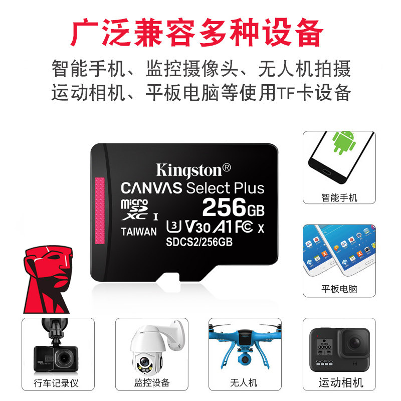金士顿tf256g内存卡高速卡128G监控64g行车记录仪手机存储卡sd卡