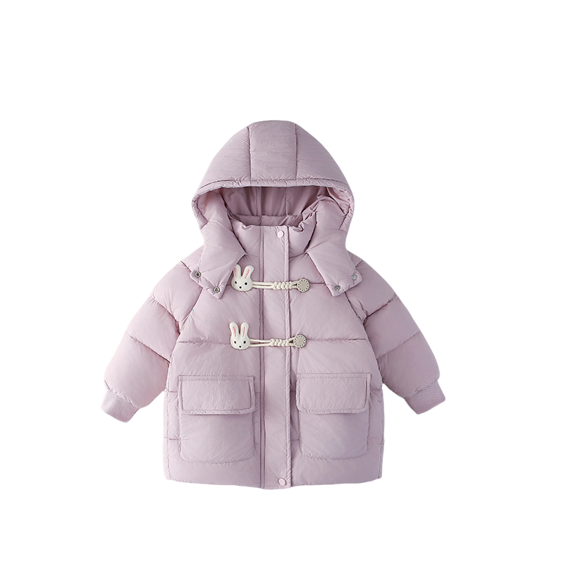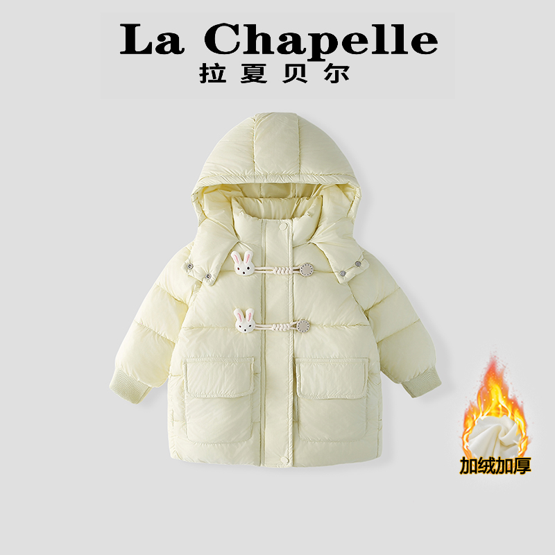 拉夏贝尔女童中长款棉服冬季新款儿童装加厚加绒外套连帽保暖棉袄