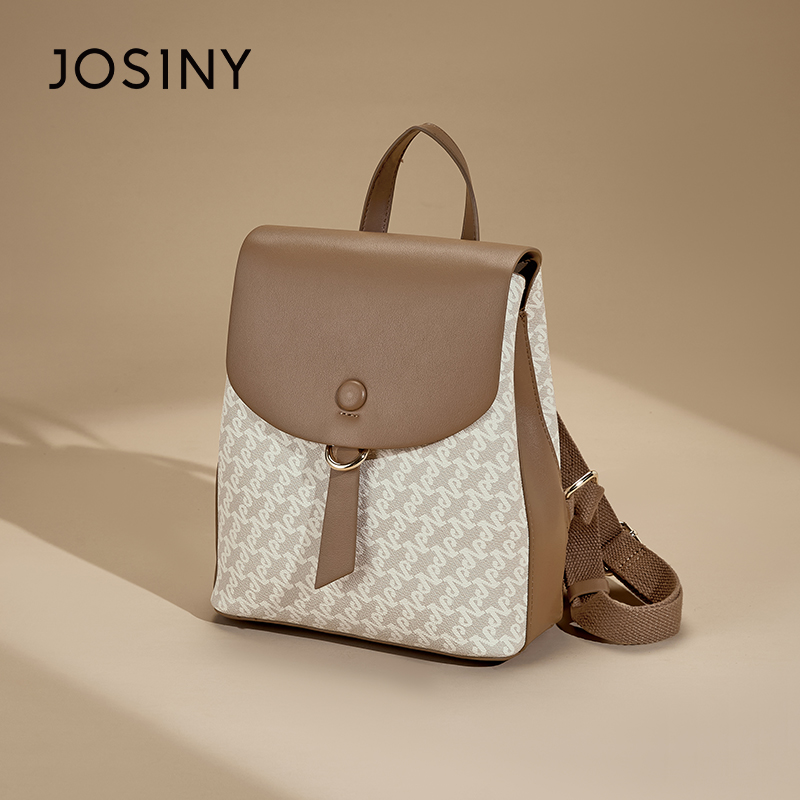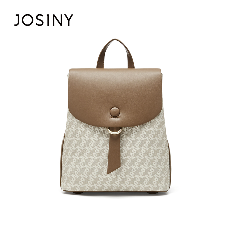 卓诗尼2025春季新款双肩包撞色复古色系印花装饰百搭休闲双肩包