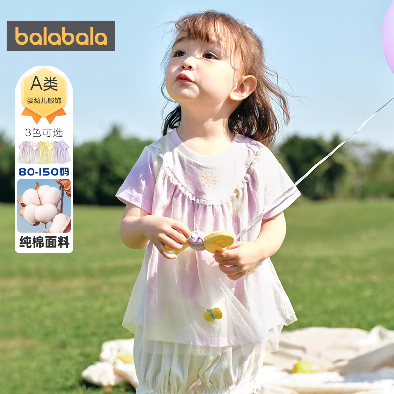 巴拉巴拉女童短袖T恤宝宝纯棉公主上衣夏装新款童装儿童洋气衣服