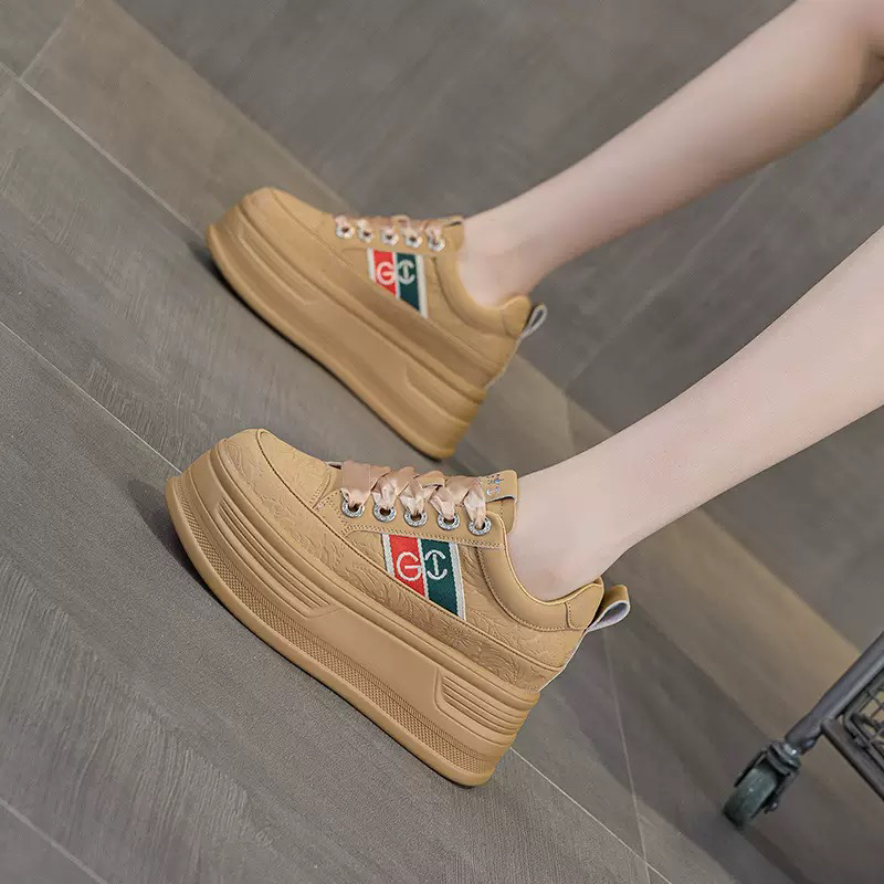 真皮内增高小白鞋女2025秋季新款百搭时尚厚底松糕小个子休闲板鞋