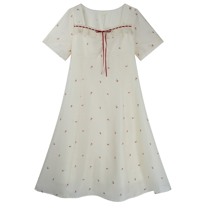 温柔风减龄拼接蕾丝长裙子胖莹莹大码女装夏季薄款显瘦碎花连衣裙