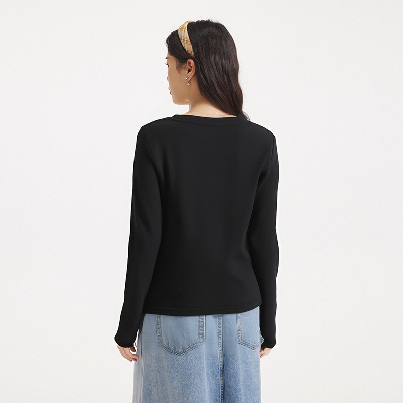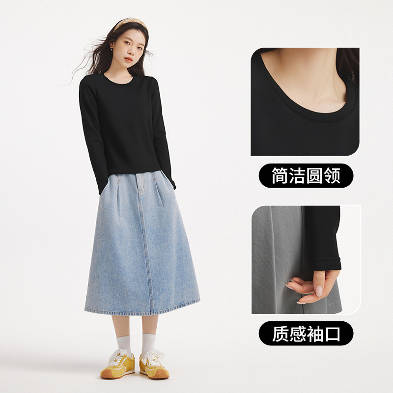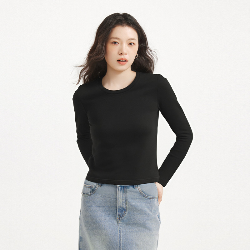 热风女士内搭打底衫上衣2025年冬季新款圆领舒适百搭内搭上衣