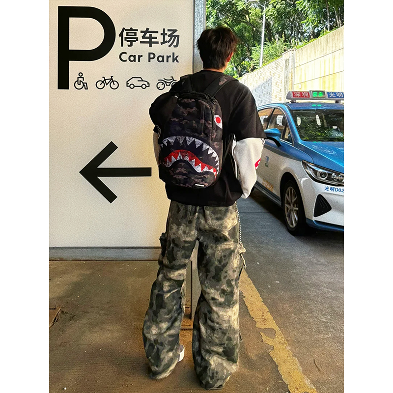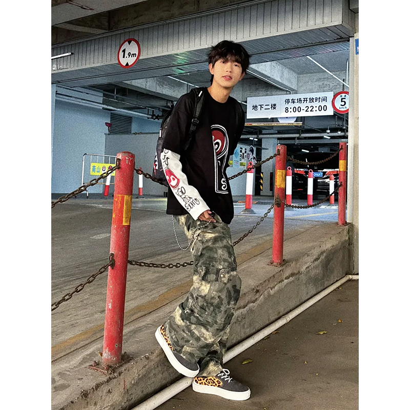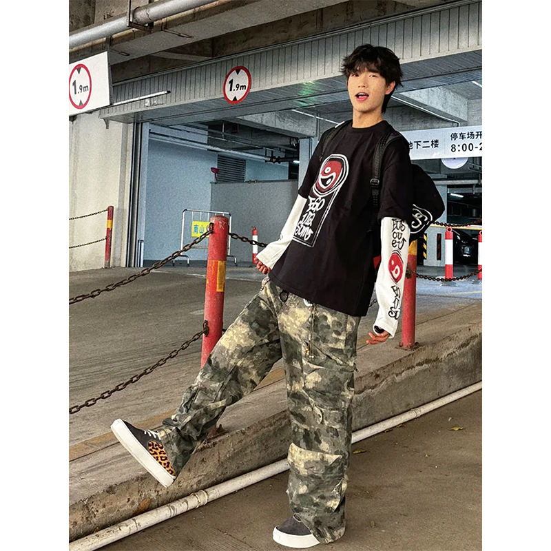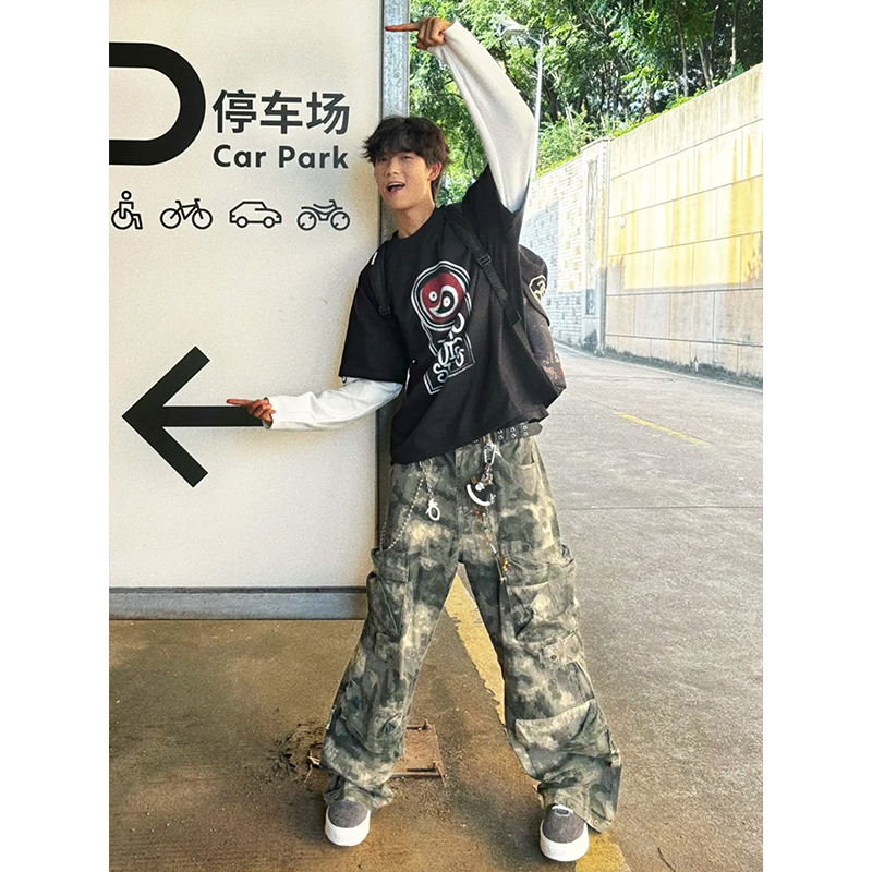 美式重工迷彩牛仔裤男女多口袋设计感宽松潮牌复古工装休闲阔腿裤