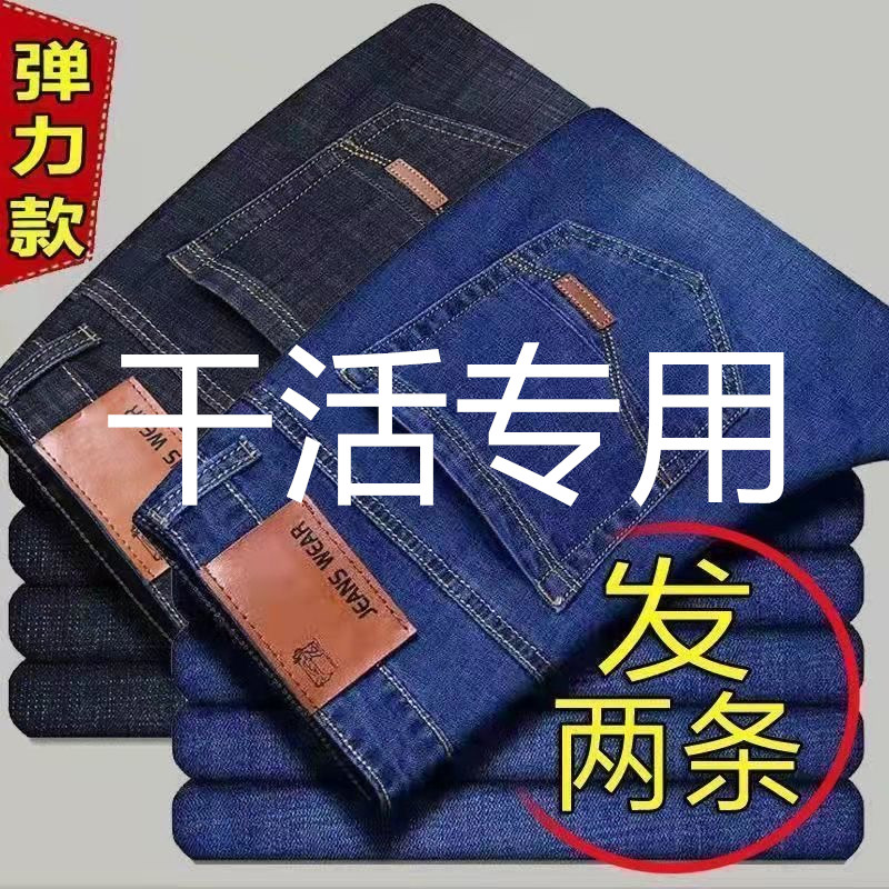 2022夏季薄款弹力牛仔裤男士直筒宽松休闲长裤工作干活高腰大码裤