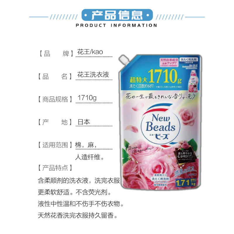 日本花王玫瑰花香持久洗衣液