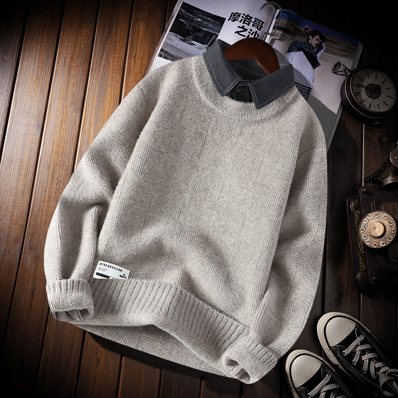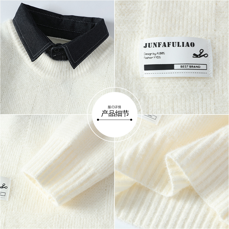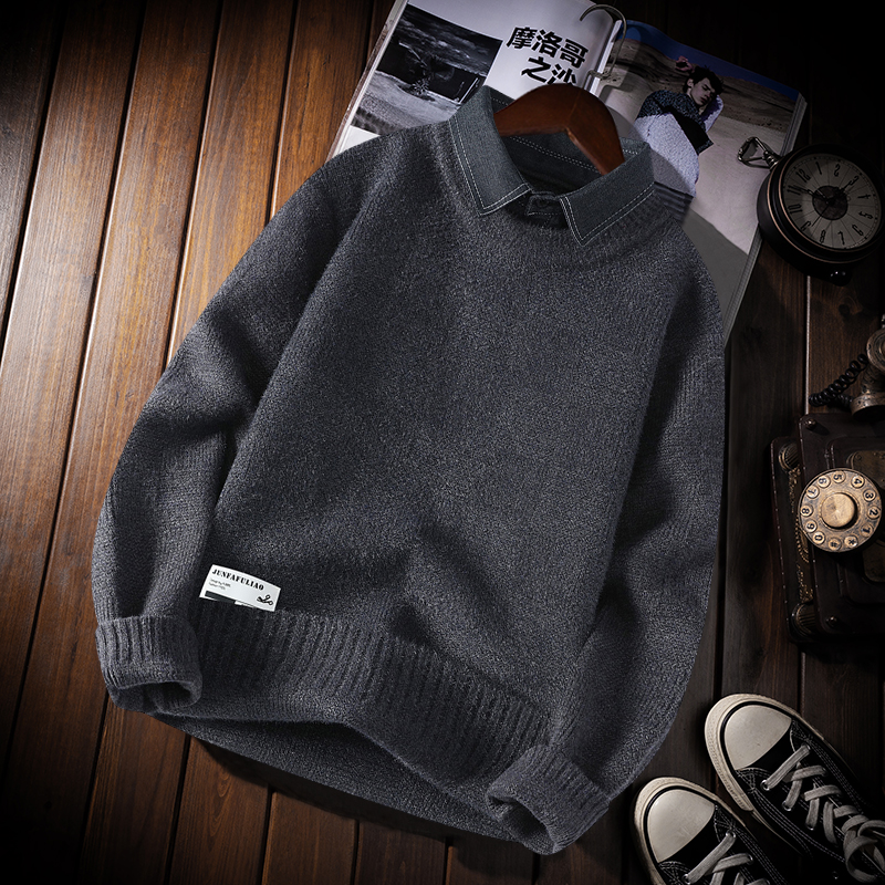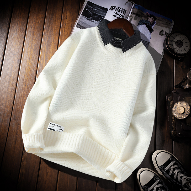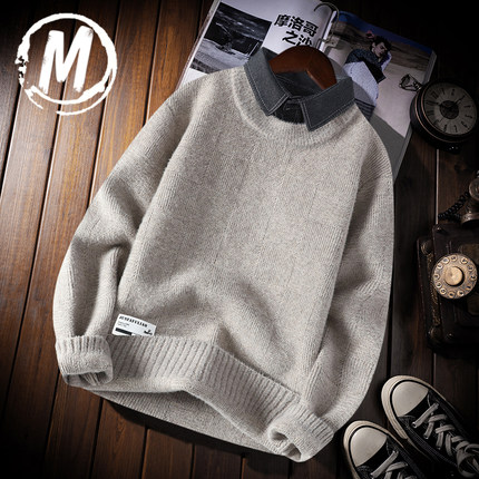 假两件毛衣男秋冬款衬衫领打底衫纯色加厚保暖内搭男士带领针织衫
