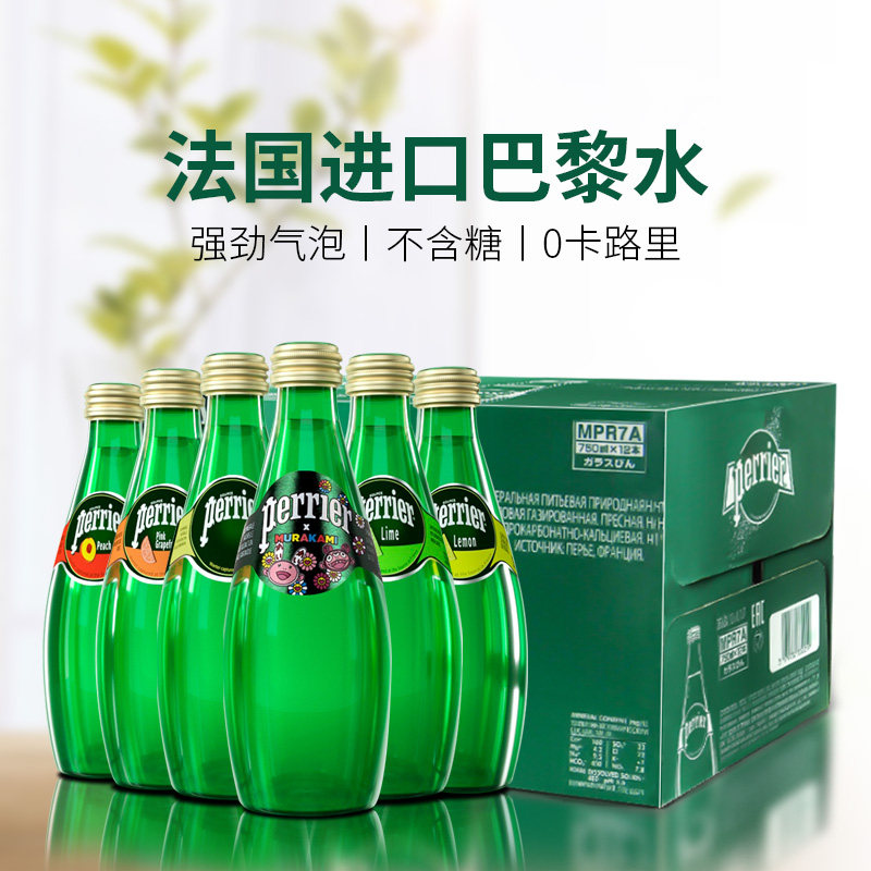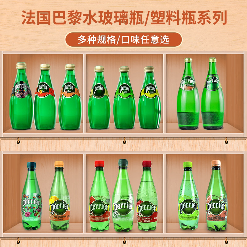 法国perrier巴黎水原味青柠味气泡水330ml*24瓶整箱苏打水玻璃瓶