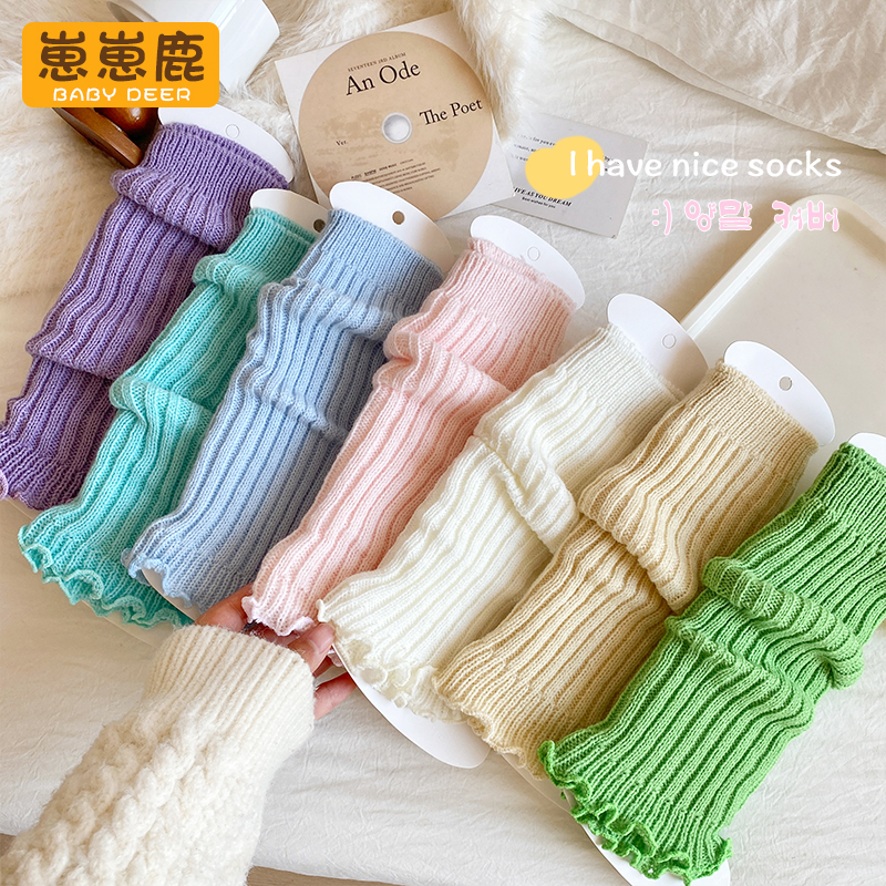 新潮儿童堆堆袜套春秋季女童韩系木耳花边蓝色紫色腿套外穿长筒袜