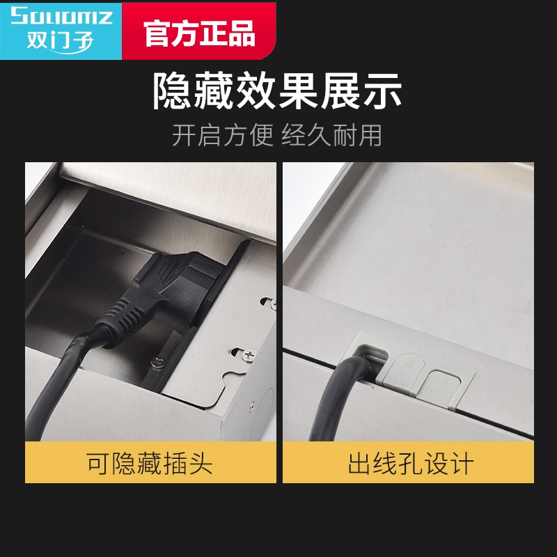 双门子不锈钢隐形纯平地插座超薄嵌入式大理石瓷砖隐形地板插座