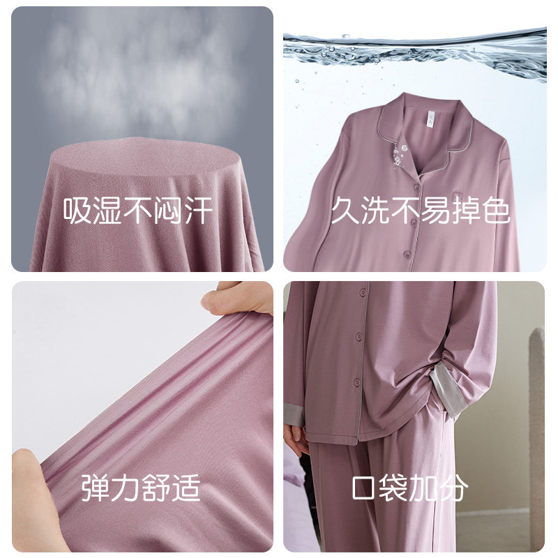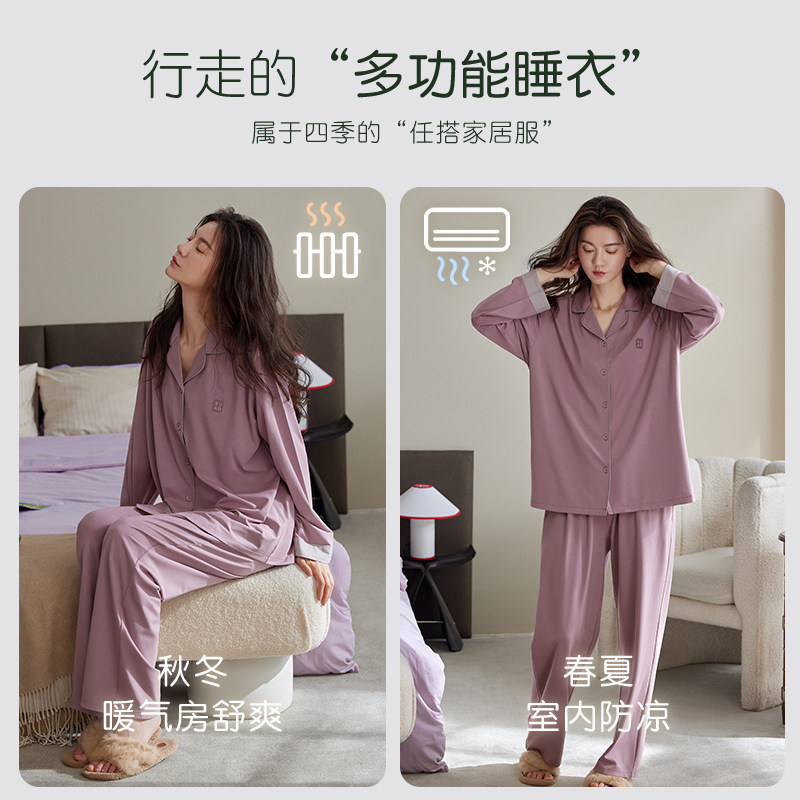 轩靓【带胸垫】睡衣女春秋季莫代尔棉薄款长袖时尚大码家居服套装