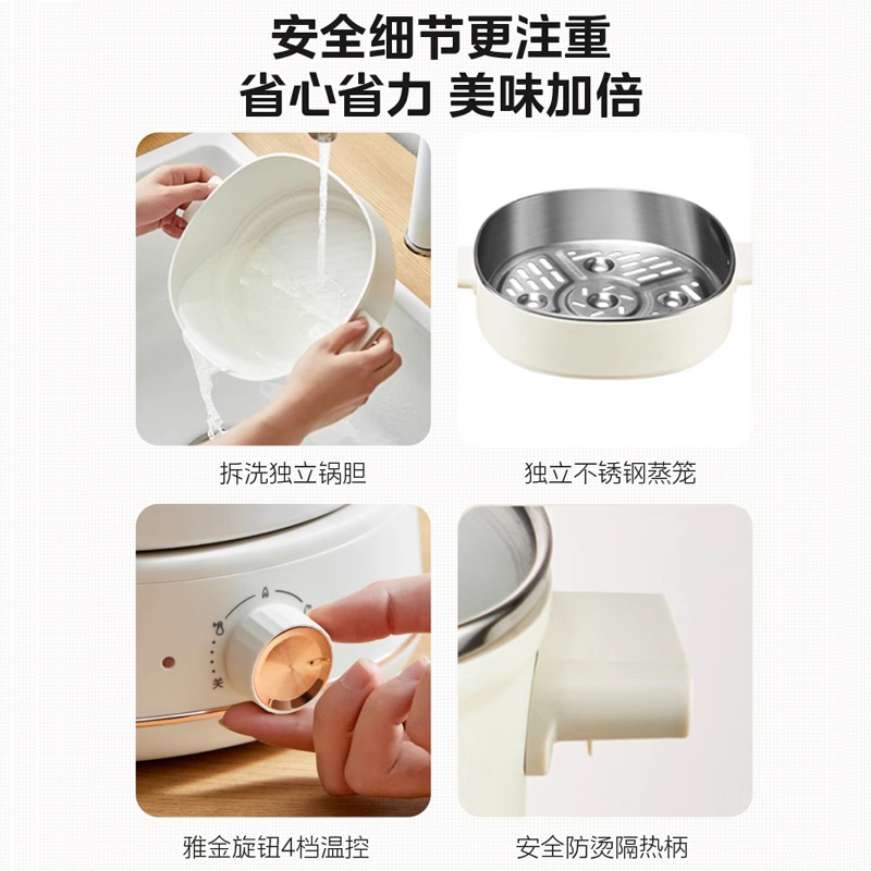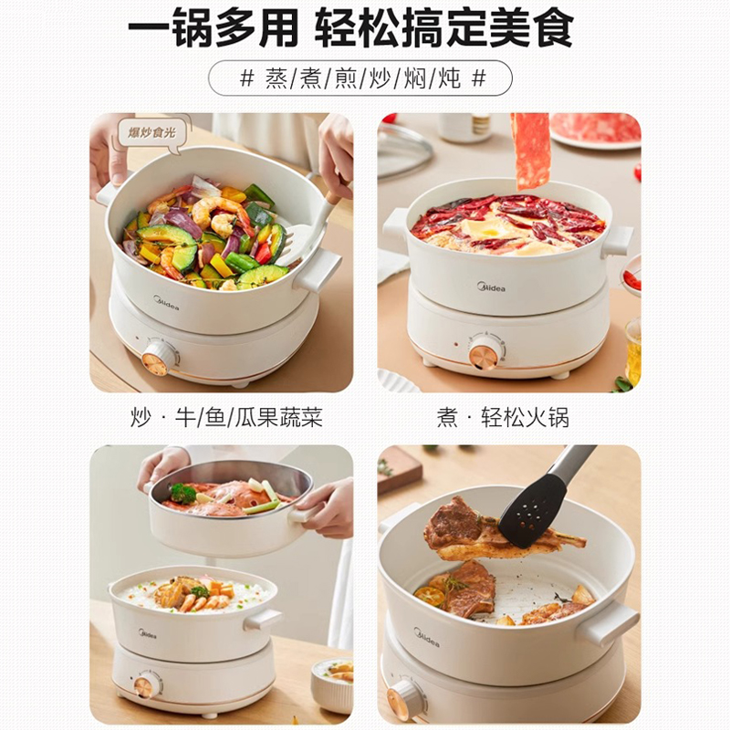 美的电火锅家用多功能分体式电煮锅煎蒸煮炒菜锅一体式不粘锅电锅