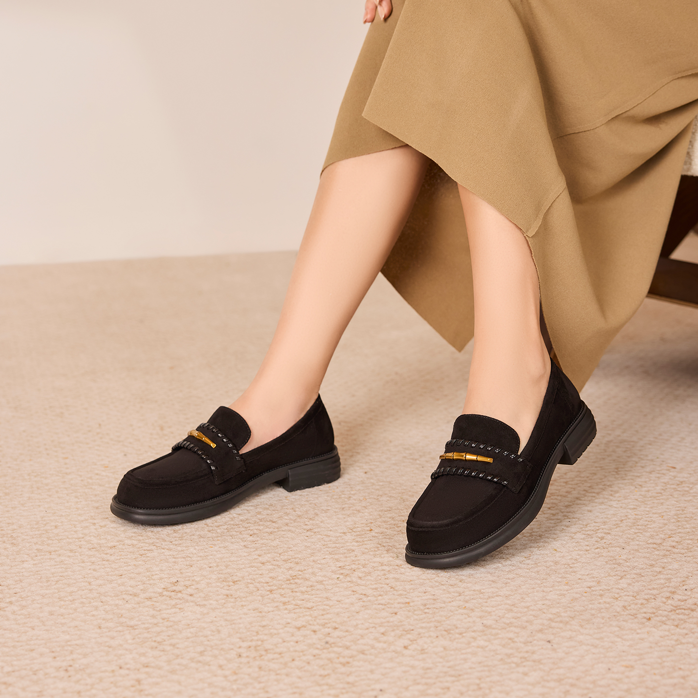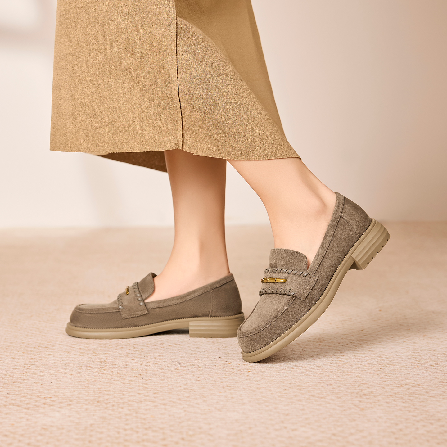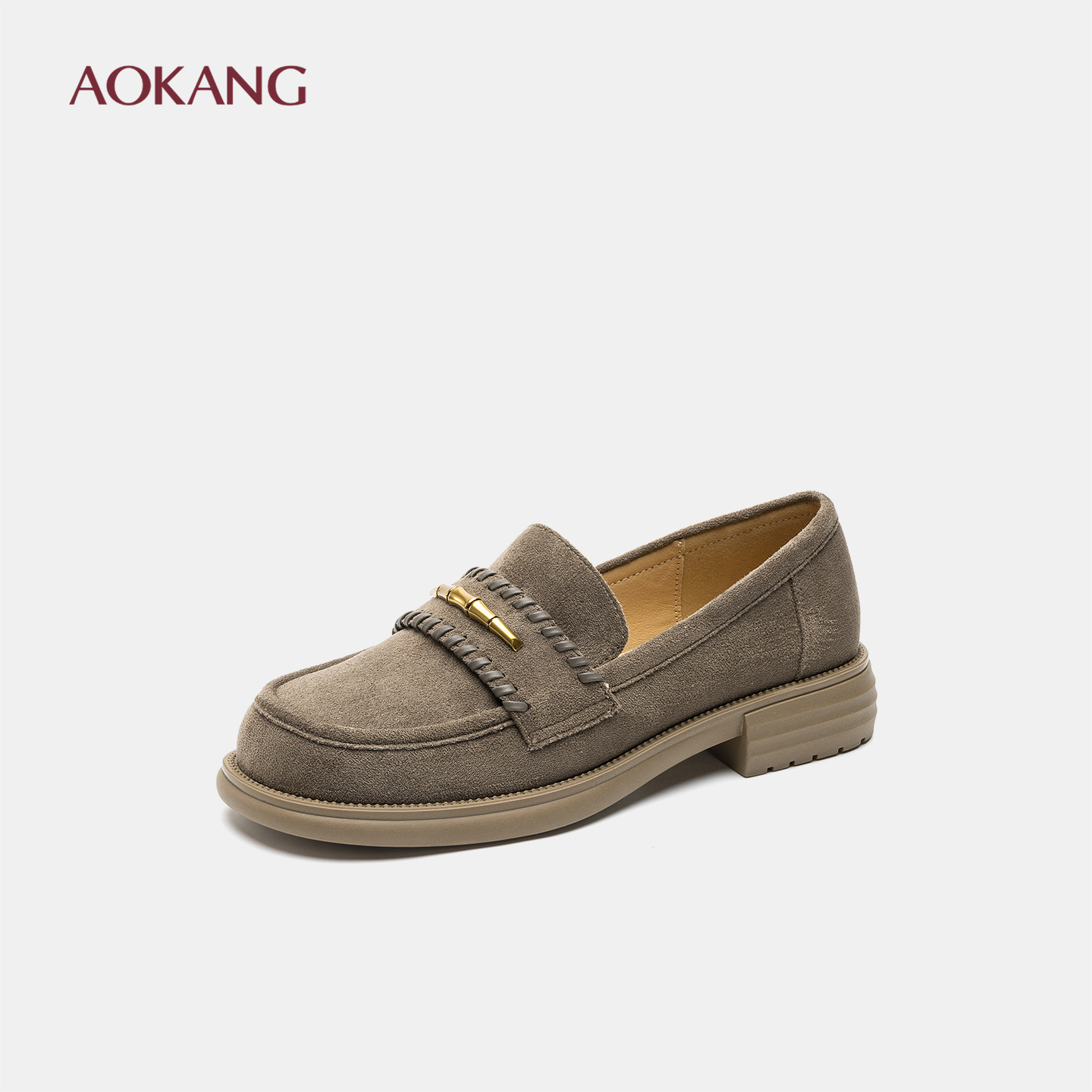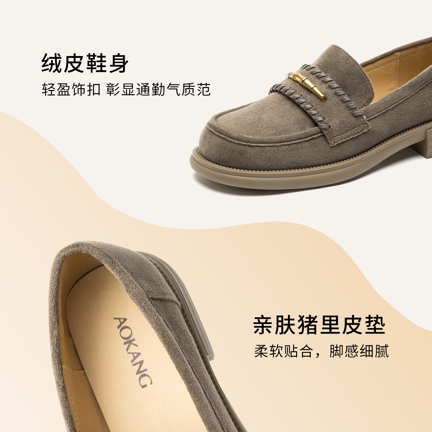 奥康 女鞋2025秋季乐福鞋气质绒皮一脚蹬浅口懒人单鞋通勤平底