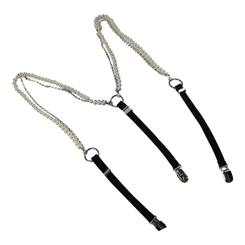蹦迪chic珍珠链条装饰背带夹超仙帅气可调节弹力松紧吊裤带夹女潮