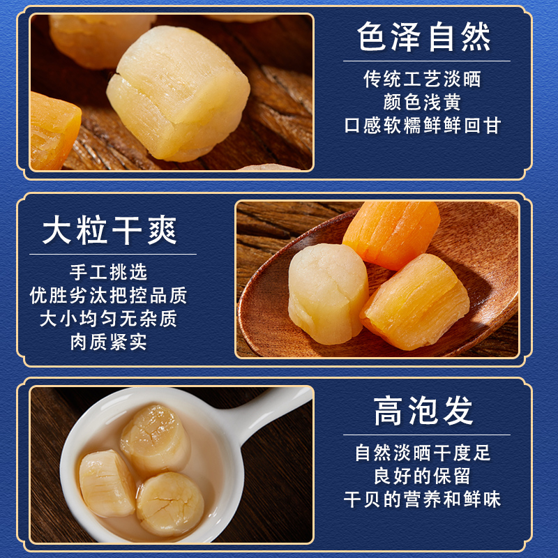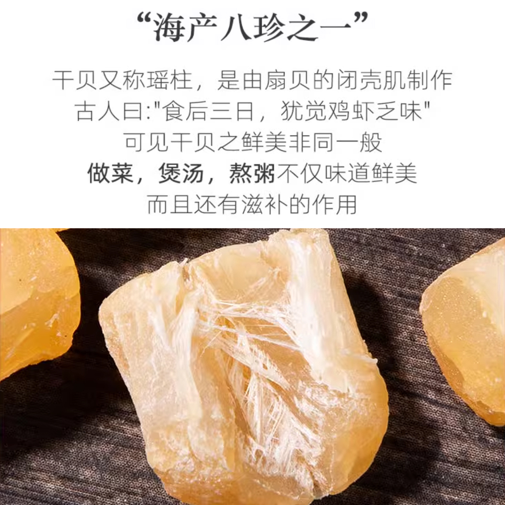 广东湛江特产大干贝瑶柱元贝干货500g罐装海鲜扇贝肉柱干货非特级