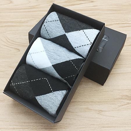 3双礼品盒装春夏季男士中筒袜 简约纯色棉袜商务休闲外贸袜子