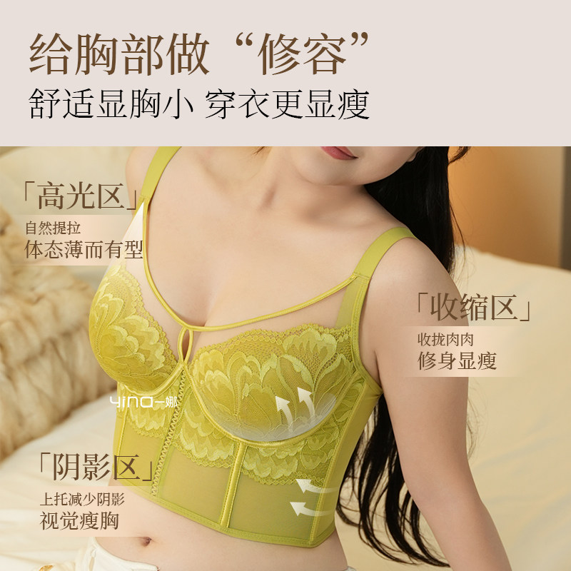 一娜秋冬塑身超薄胸显聚拢调整型下垂薄款蕾丝上托大码内衣文胸女
