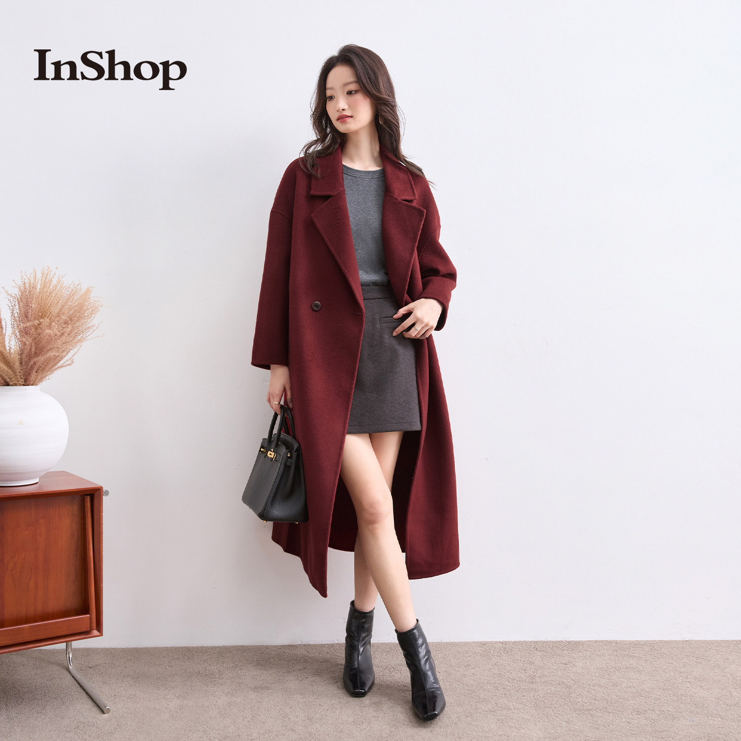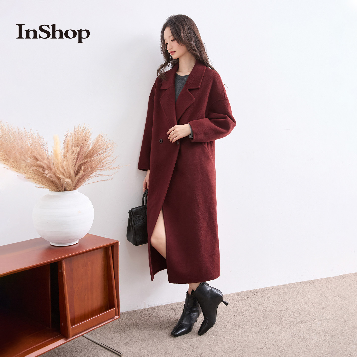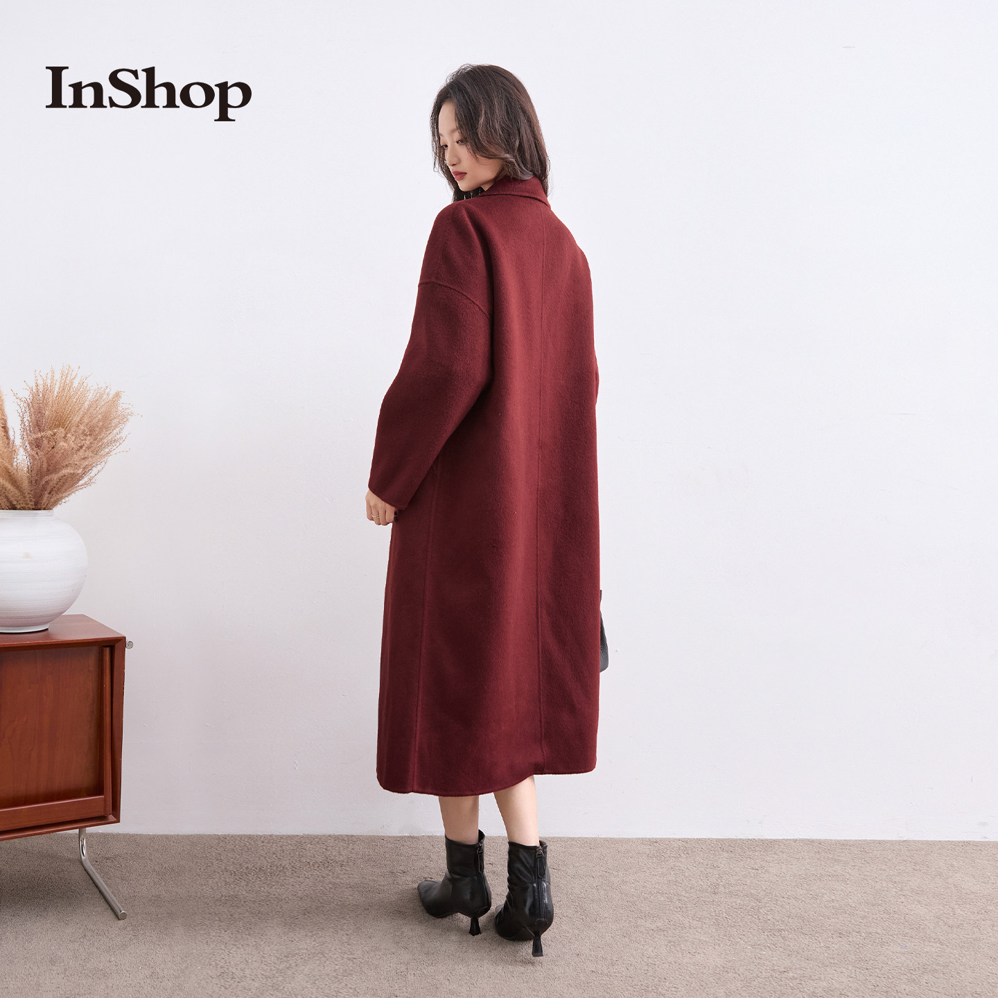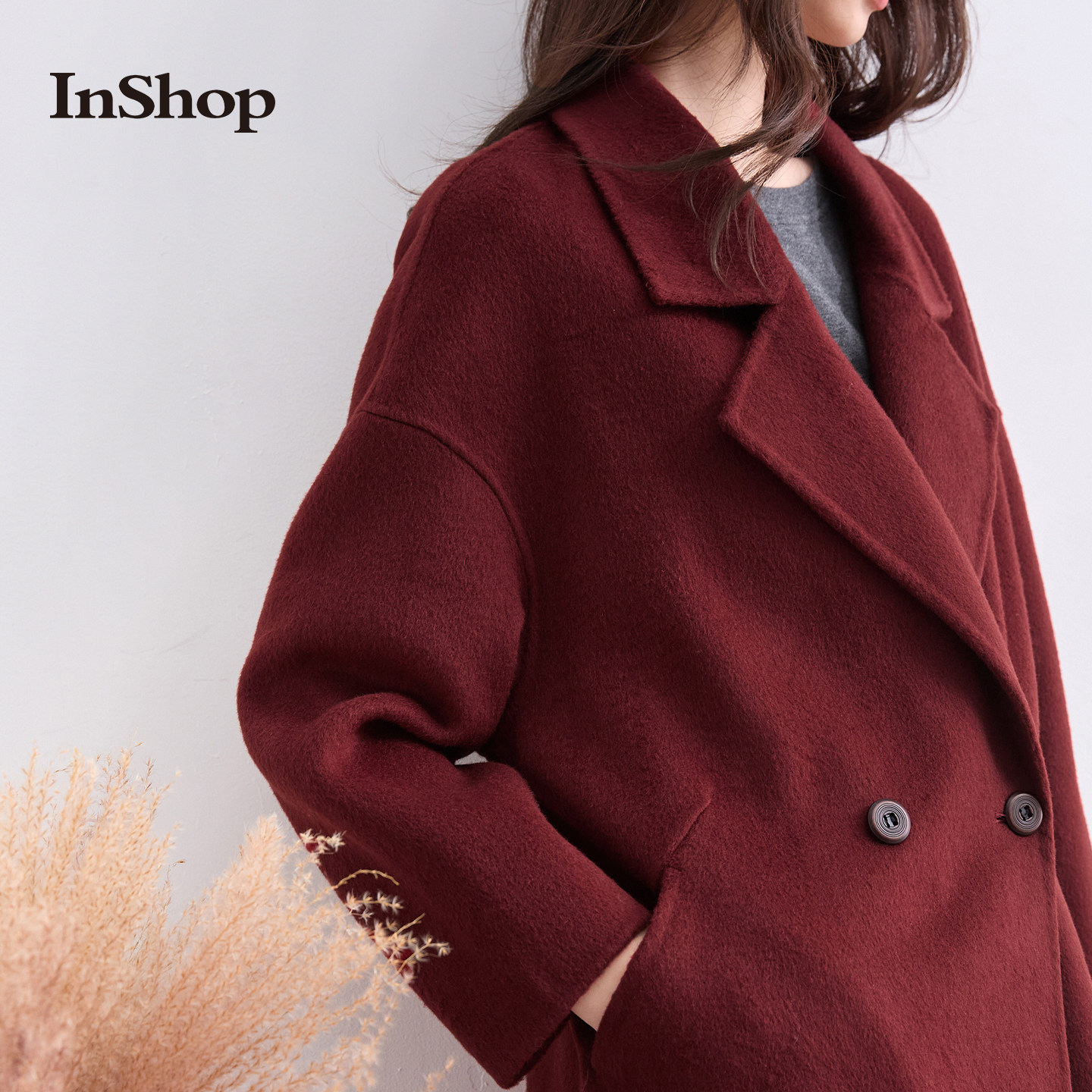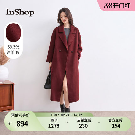 【商场同款】INSHOP新款女复古优雅毛呢外套高级戗驳领保暖大衣