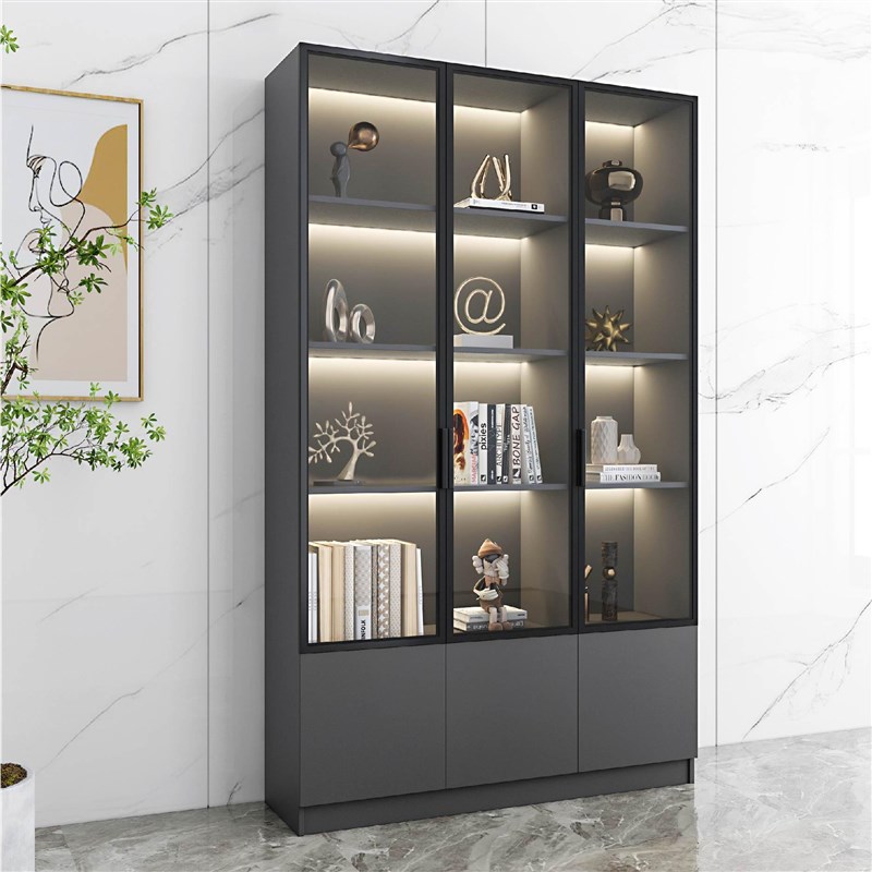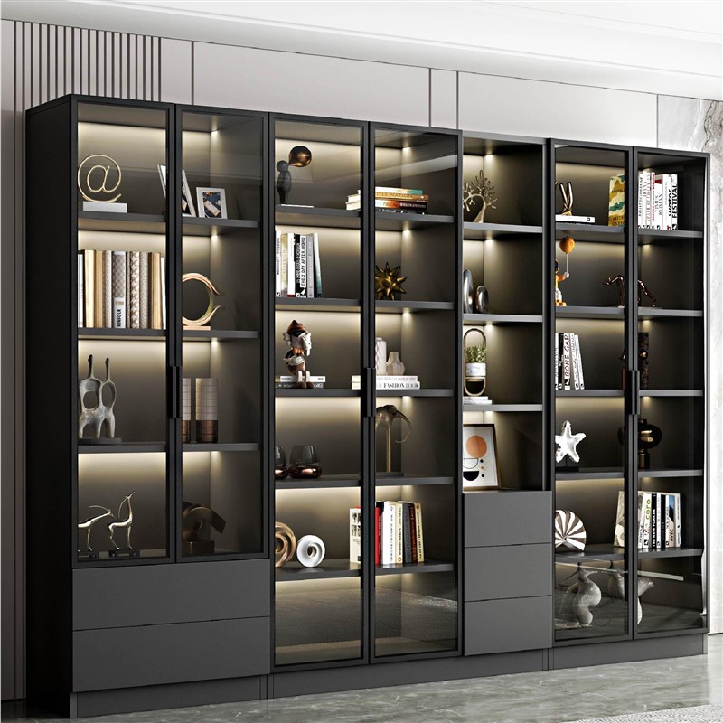 落地置物柜带门玻璃书柜展示柜立柜窄柜组合储物柜书房柜子收纳柜