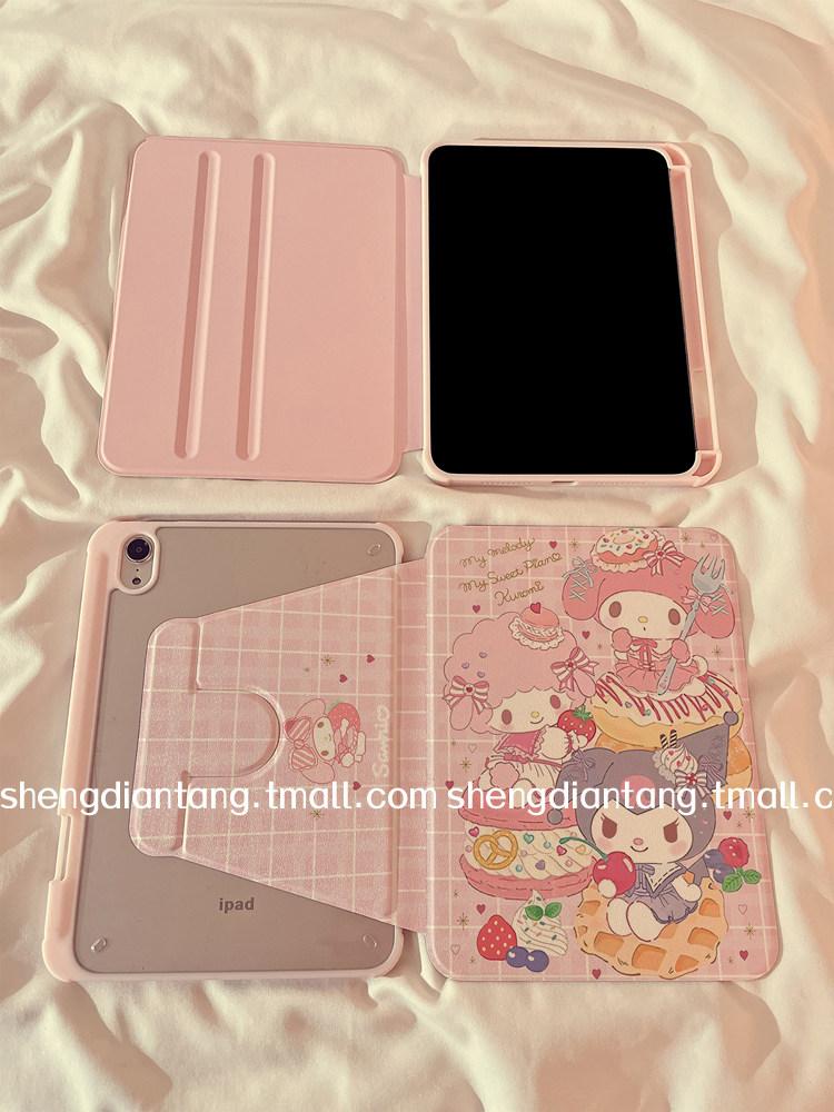卡通粉甜品三丽鸥360度旋转iPad10保护套2024新款适用苹果iPad10.2寸mini6平板Air4/5保护壳pro女软9.7带笔槽
