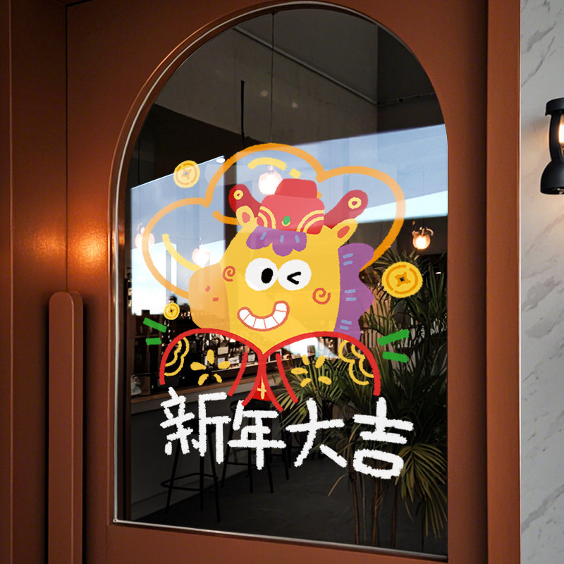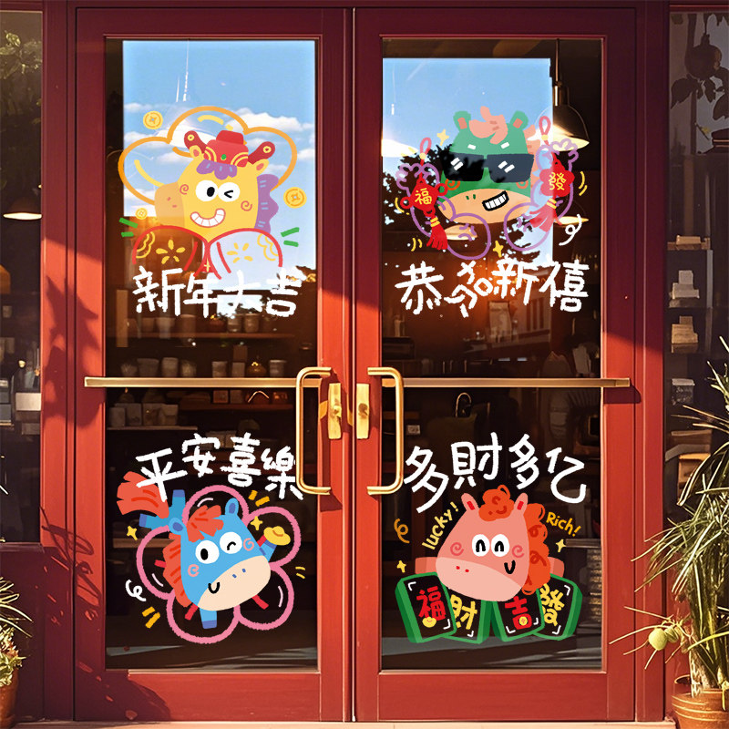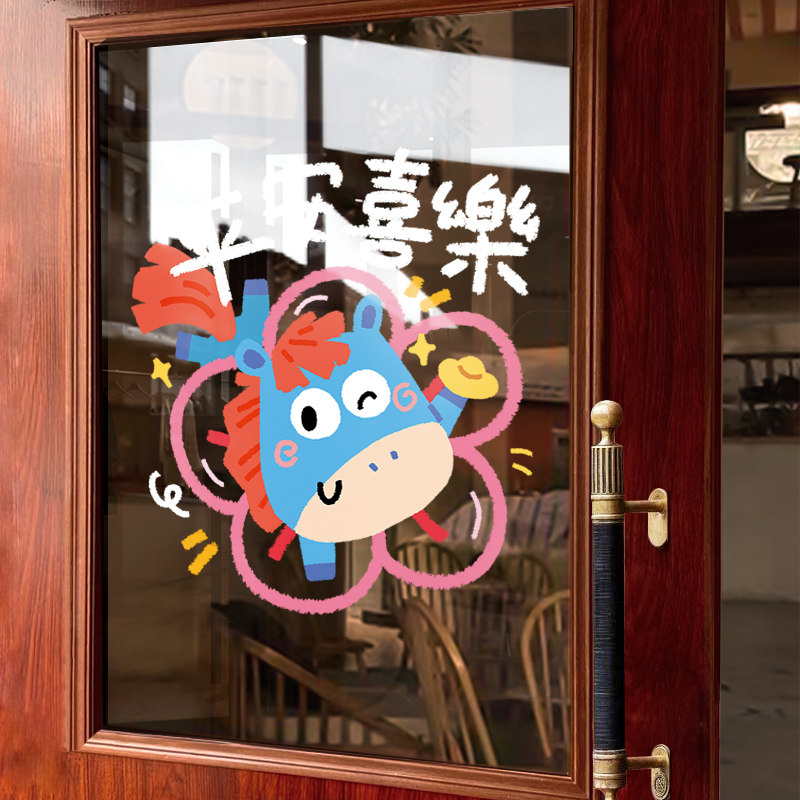 新年装饰线条马窗花马年春节可爱窗贴2026过年静电玻璃贴门贴纸