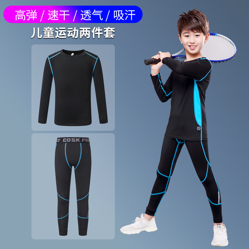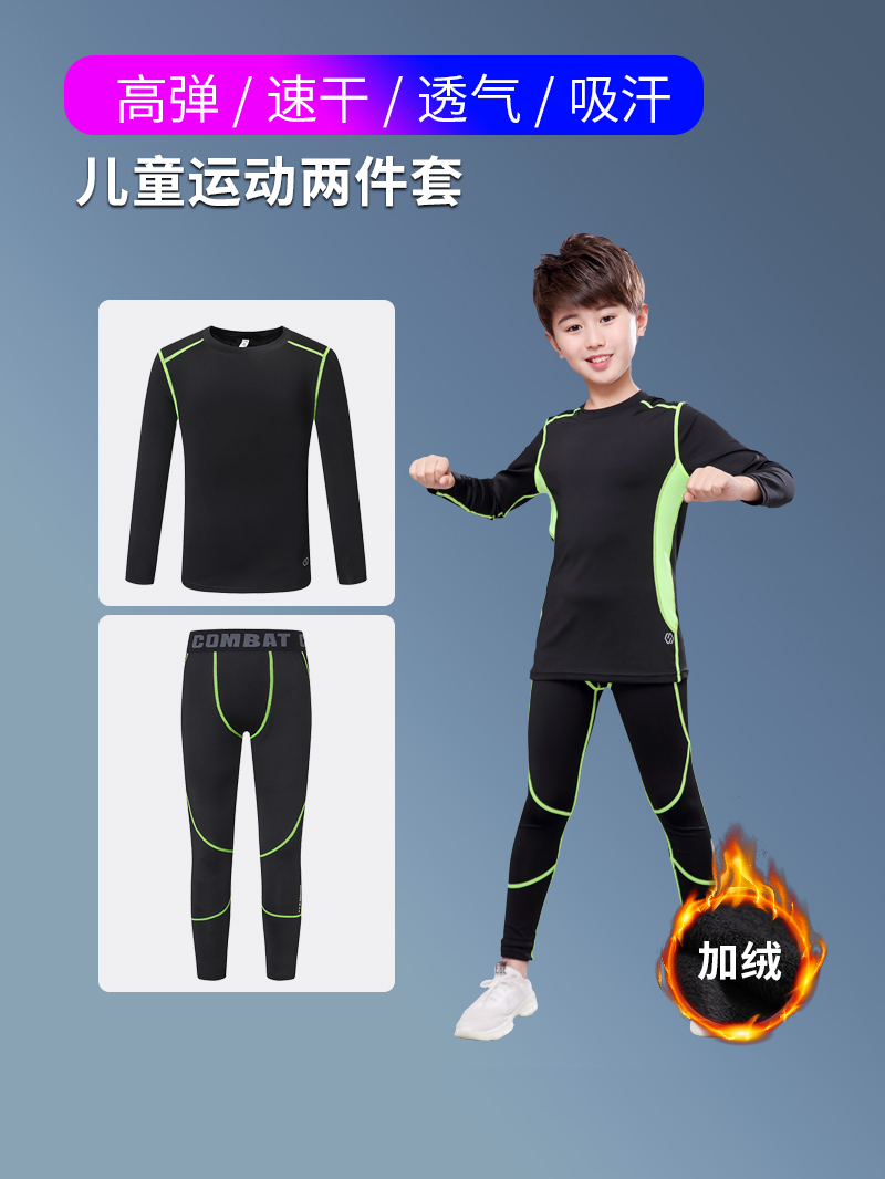 儿童紧身衣训练服男长袖跑步套装健身服篮球足球运动速干衣加绒男