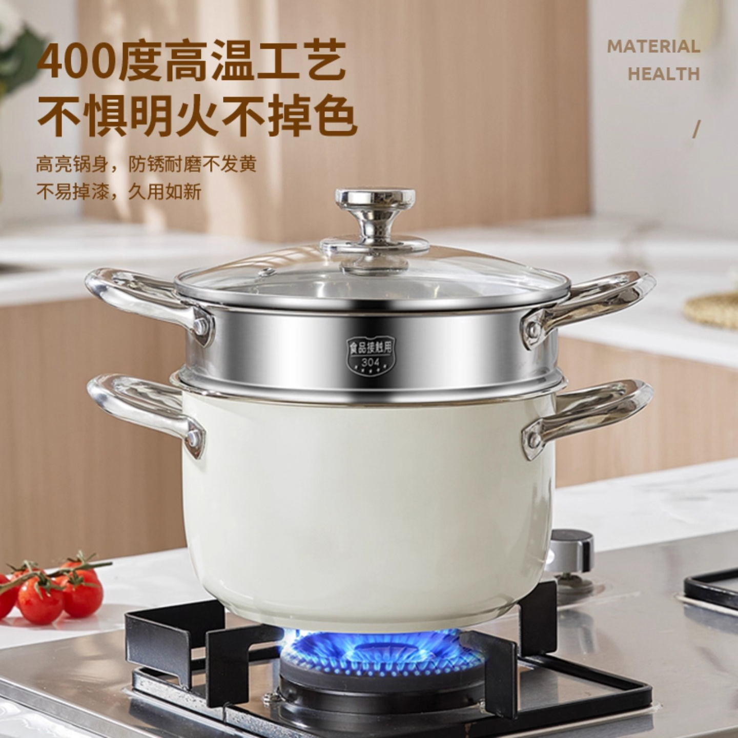 日本加厚304不锈钢汤锅家用双耳小煮锅煲汤电磁炉燃气食品级汤锅