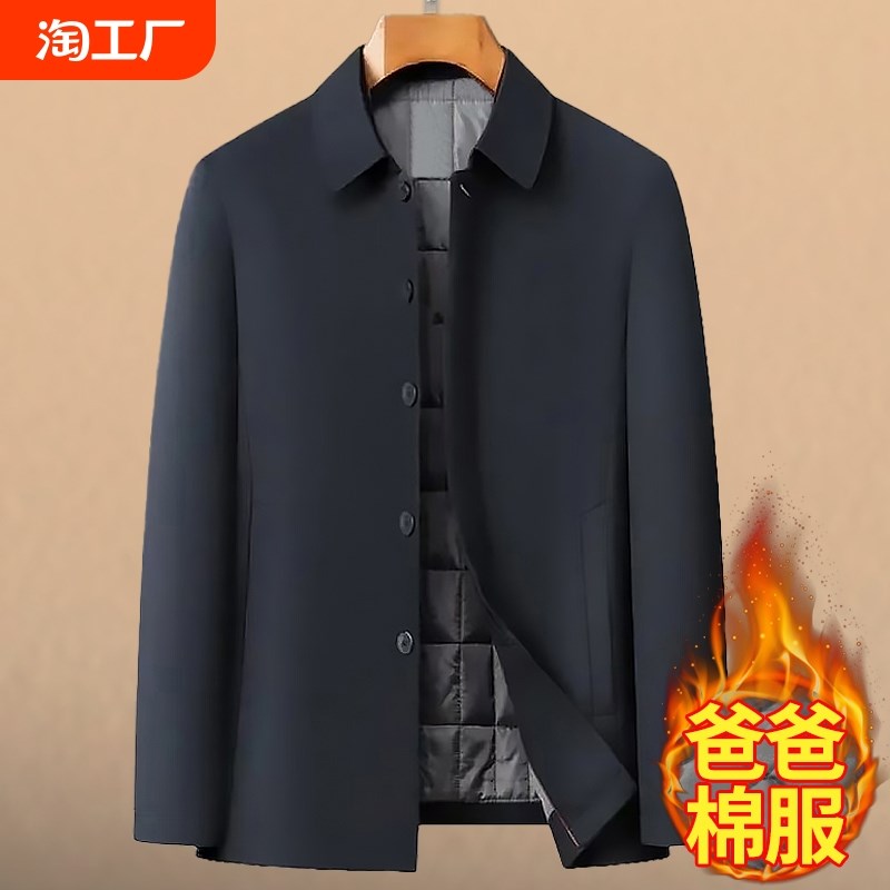 秋冬男装外套加棉夹克中老年男士保暖棉衣冬季爸爸装宽松爷爷棉服