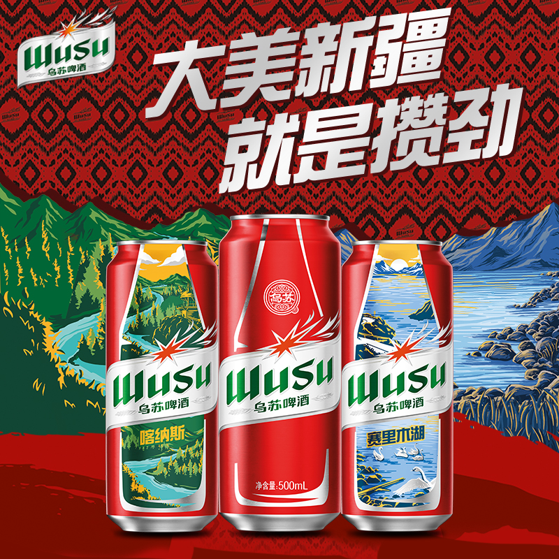 乌苏啤酒红乌苏风景罐500ml*24罐+白啤500ml*12罐共36罐装囤货装
