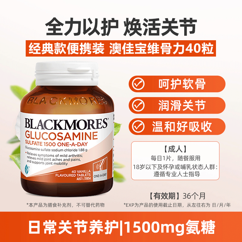 澳洲澳佳宝维骨力40粒成人关节灵三合一全能舒缓氨糖软骨素钙镁片
