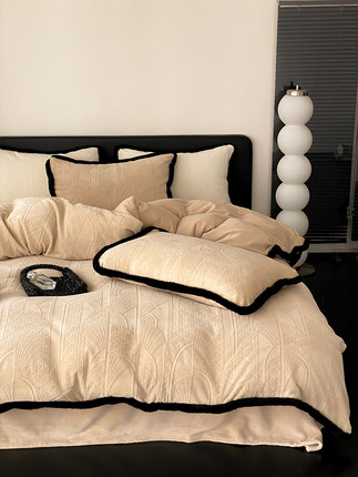 法式公主风花边加厚牛奶绒四件套冬季保暖雕花珊瑚绒被套床单床笠
