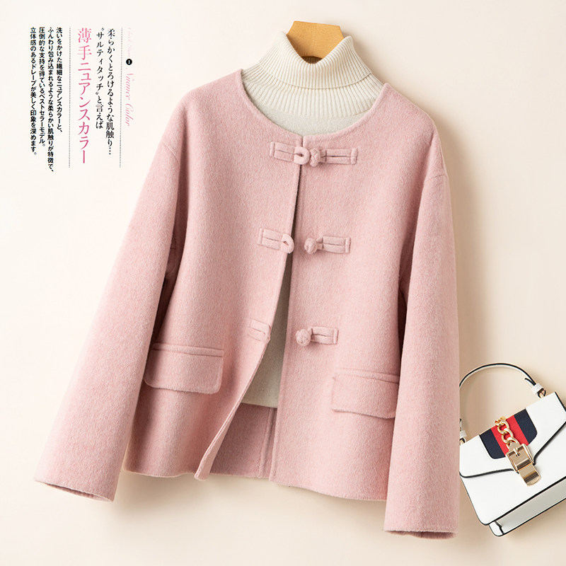 2024秋冬新款双面羊绒大衣圆领小香风新中式毛呢外套女设计感短款