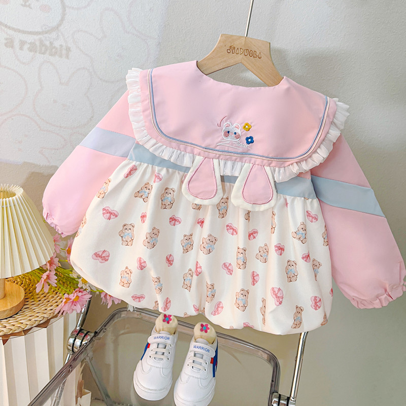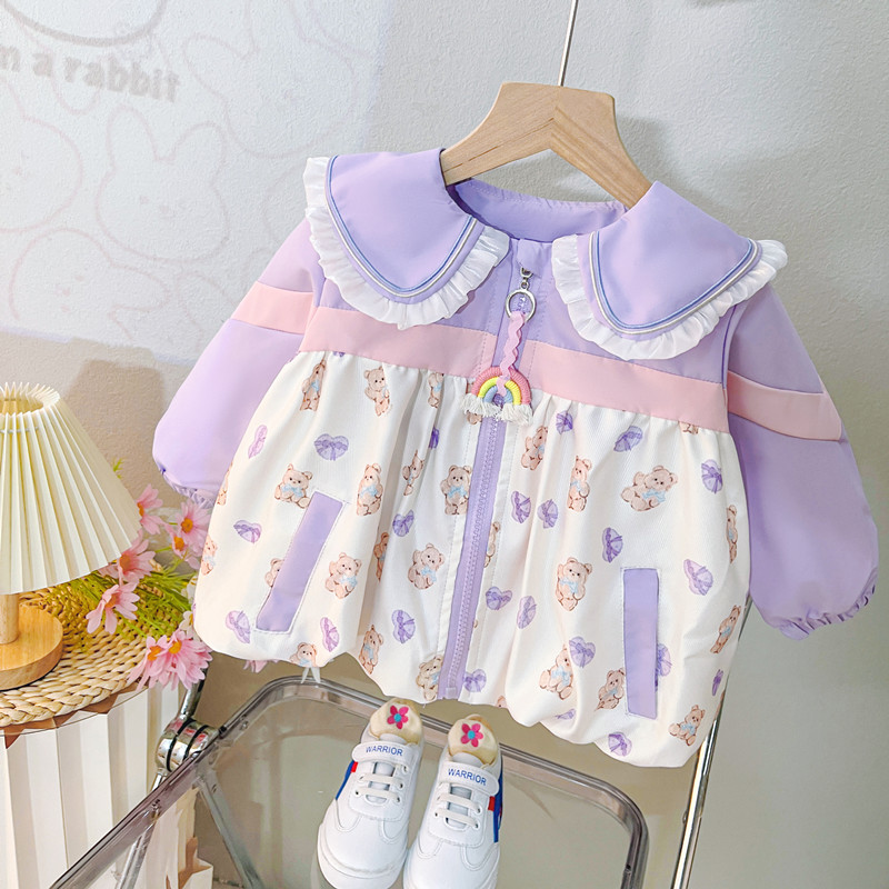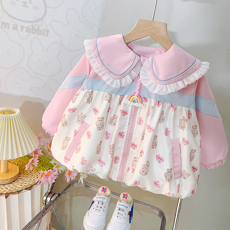 女小童小熊外套春秋款2025新款宝宝洋气风衣秋装小女孩冲锋衣上衣