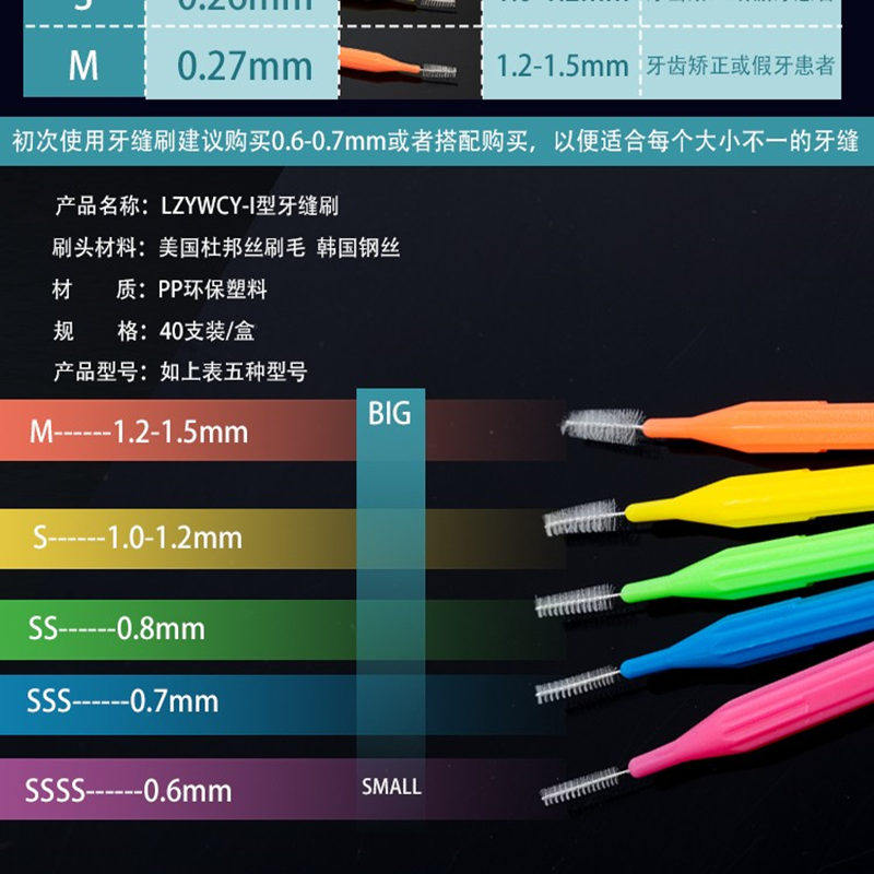 ASM牙缝刷40支不锈钢丝进口正畸专用牙间隙超细护理工具家庭装